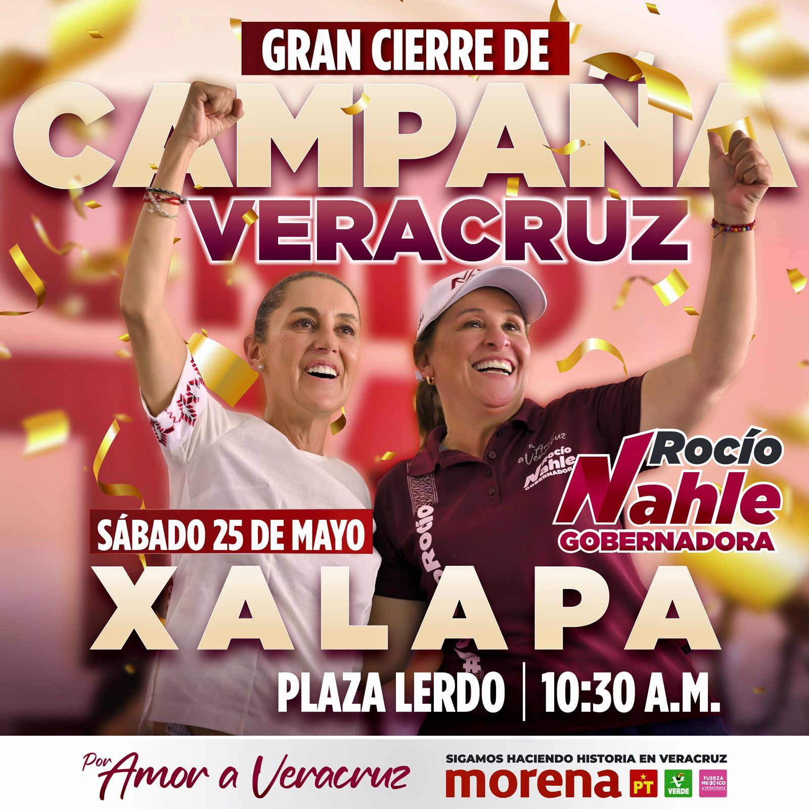 Orizaba, Ver., lunes 20 de mayo de 2024.- El próximo sábado 25 de mayo al mediodía, la candidata a la gubernatura de Veracruz por Morena, PT, PVEM y Fuerza por México, Rocío Nahle García, cerrará campaña con la presencia de la abanderada presidencial morenista, Claudia Sheinbaum Pardo.