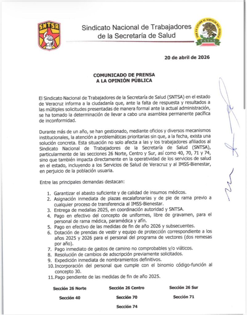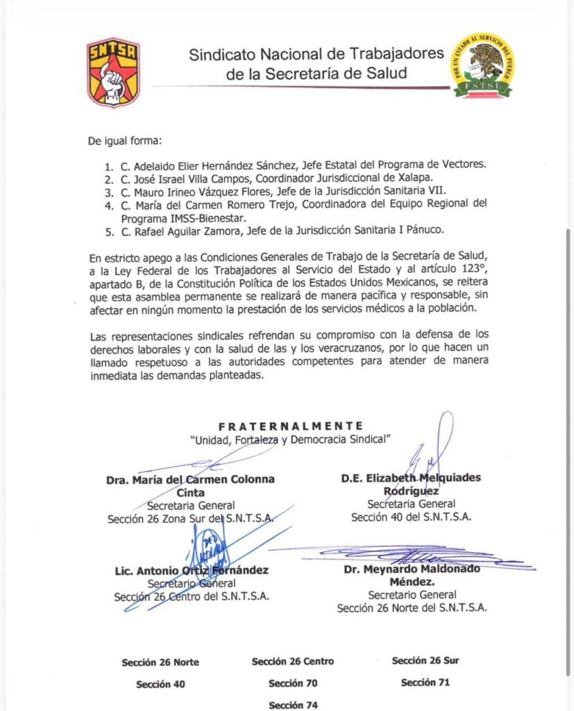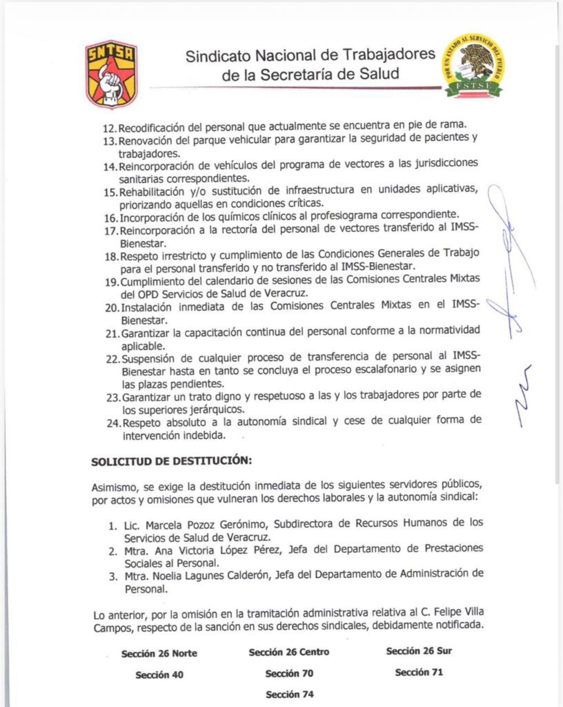 Exigen 24 demandas, también piden la intervención directa de la gobernadora Rocío Nahle y piden la destitución inmediata de: