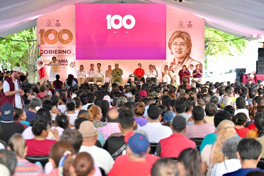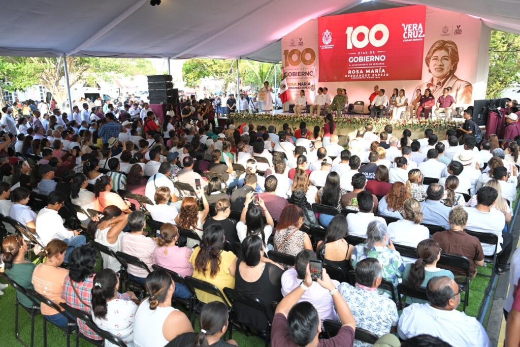 En asamblea pública previa a la Jornada del Jueves en tu Colonia, la presidenta municipal de Veracruz, Rosa María Hernández Espejo, presentó el balance de los primeros 100 días de gobierno, con resultados reales y tangibles logrados en el inicio de la transformación de la Cuatro Veces Heroica Ciudad de Veracruz.