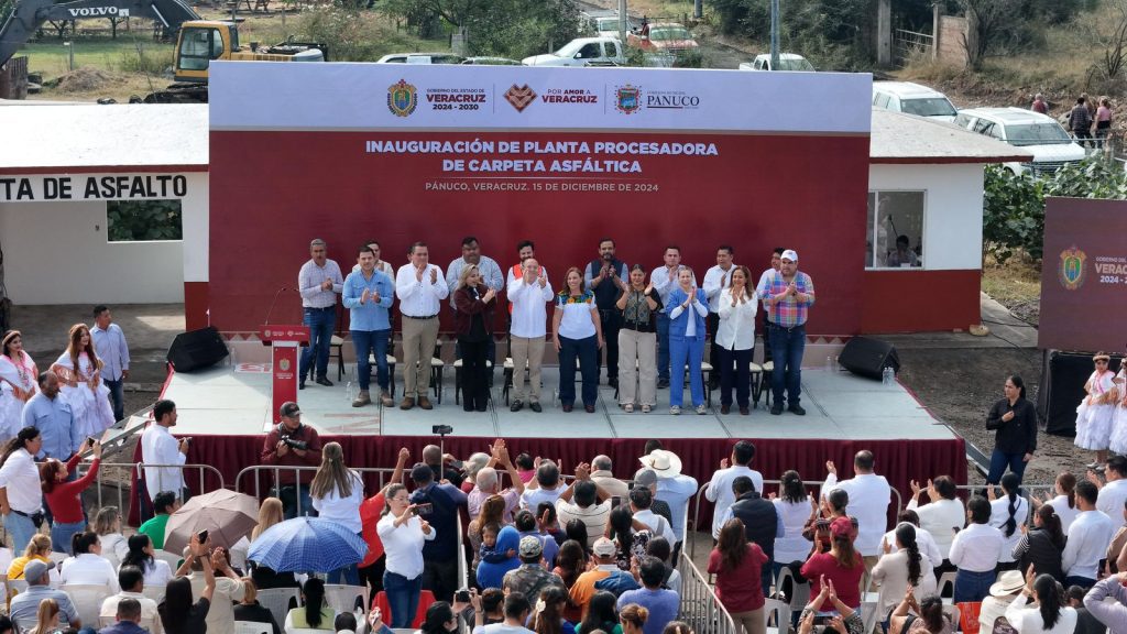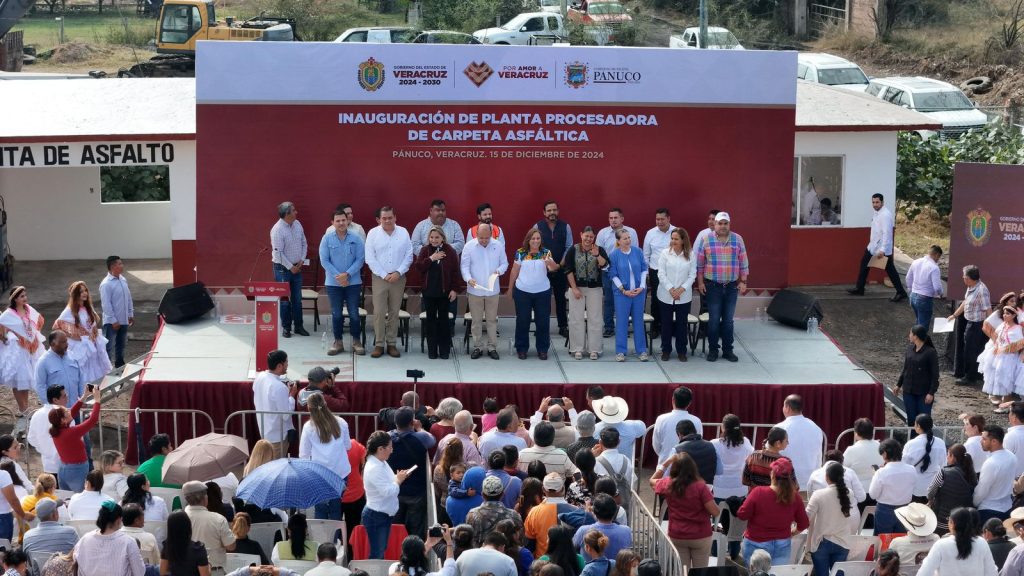 Pánuco, Ver., domingo 15 de diciembre de 2024.-Durante la inauguración de una planta procesadora de asfalto en Pánuco, la gobernadora de Veracruz, Rocío Nahle García, anunció el inicio de la ampliación y rehabilitación de la carretera federal 127, que conecta Pánuco, Tantoyuca y Tuxpan.