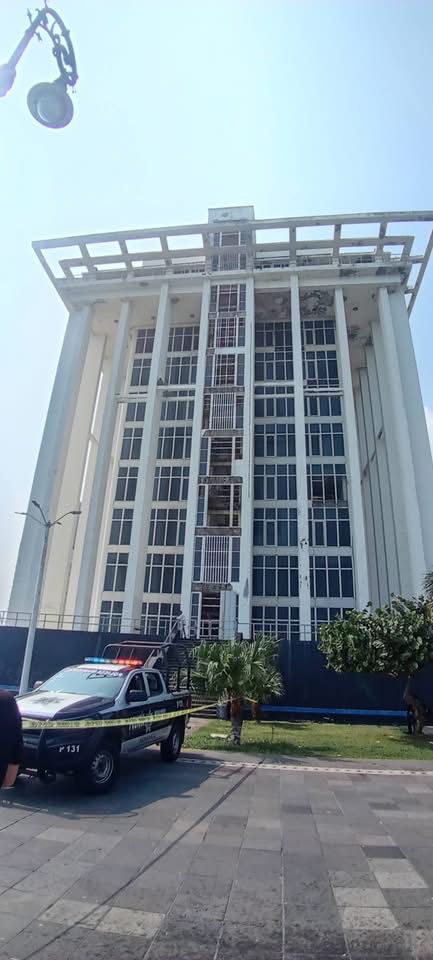 Veracruz, Ver., 18 de noviembre 2025.- Una persona del sexo masculino, y al parecer bajo los efectos de algún estupefaciente, trepó a la cornisa del sexto piso de la Torre de Pemex en el Malecón de Veracruz, lo que ocasionó una fuerte movilización de los diferentes cuerpos de emergencia para salvaguardar la propia integridad física del sujeto.
