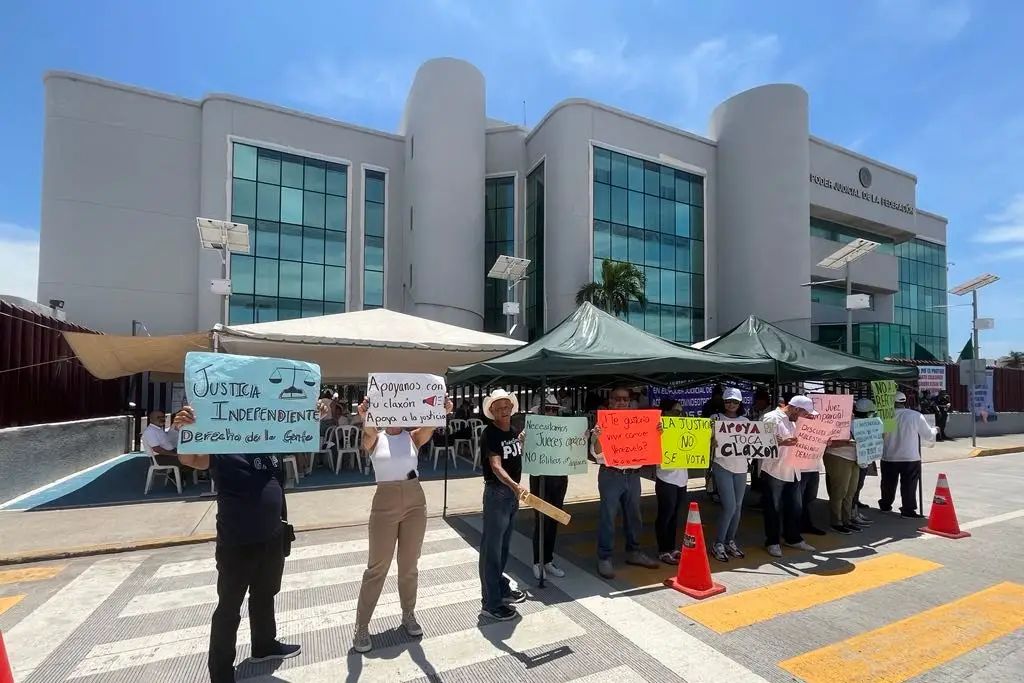 Trabajadores del Poder Judicial de la Federación se manifestaron nuevamente en el Palacio de Justicia de Federal en la avenida Juan Pablo II en Boca del Río.