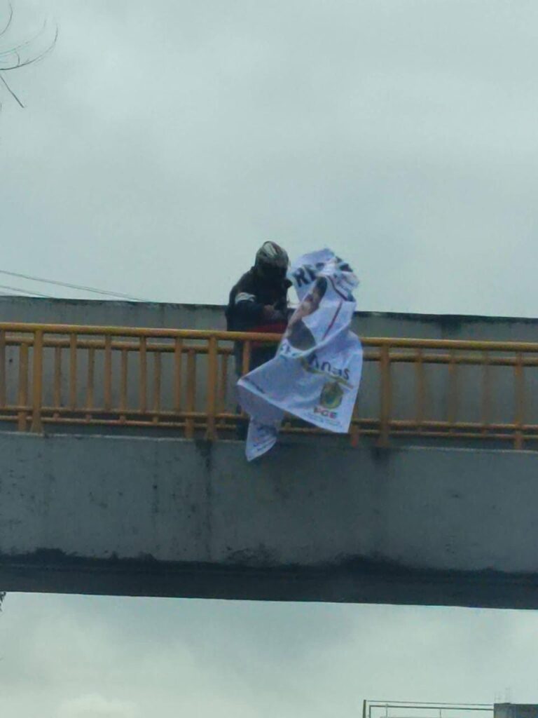 ​Las lonas fueron vistas en puntos estratégicos como los puentes peatonales de CAXA, Miguel Alemán, la calle Bolivia y el Bulevar Xalapa-Coatepec (a la altura de Los Arenales).