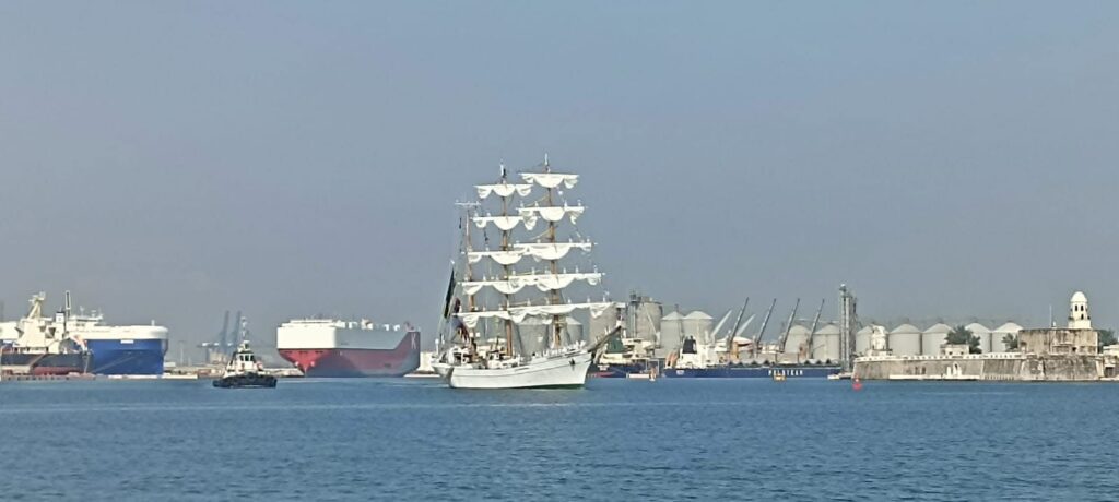 Veracruz, Ver., 30 de noviembre 2025.- Tal y como estaba agendado en la bitácora de viaje del Buque Escuela “Cuauhtémoc”, este domingo zarpó del puerto de Veracruz con destino al puerto de Acapulco, siendo despedido por cientos de personas que se dieron cita al Malecón.