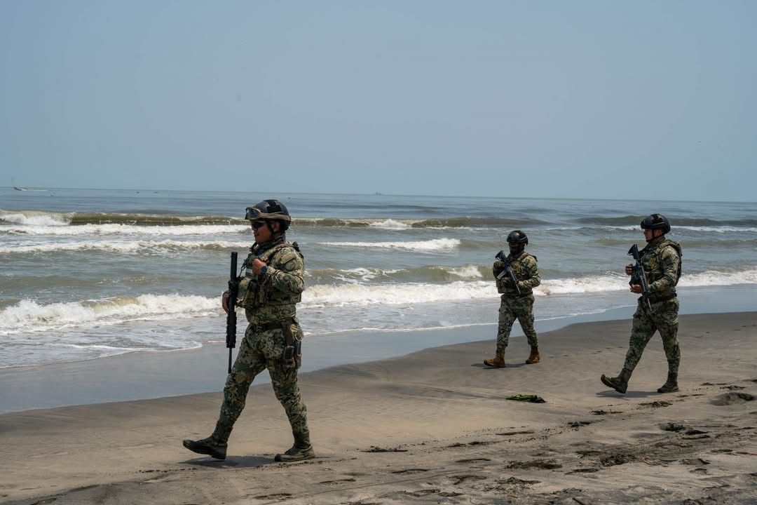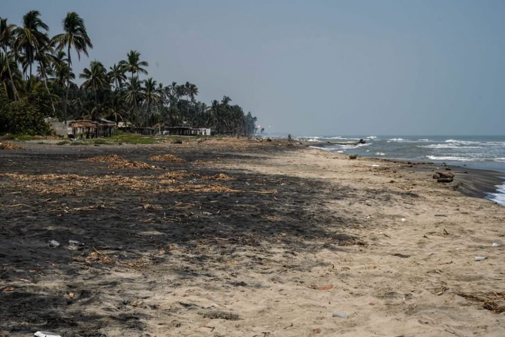 Las autoridades navales supervisan la zona costera cercana a la Refinería Dos Bocas, donde se han detectado acumulaciones de sedimentos oscuros en la arena, arrastrados por las corrientes del Golfo de México.