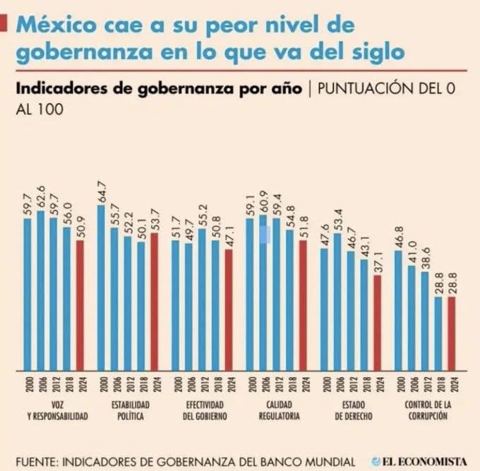 Con el gobierno de Andrés Manuel López Obrador México registro los peores niveles de gobernanza del siglo.