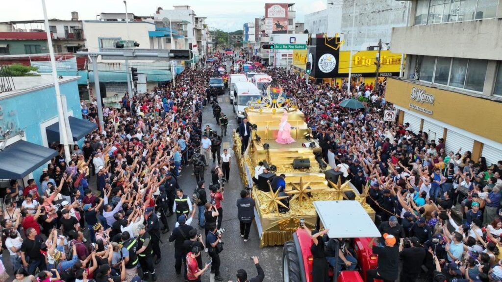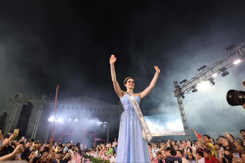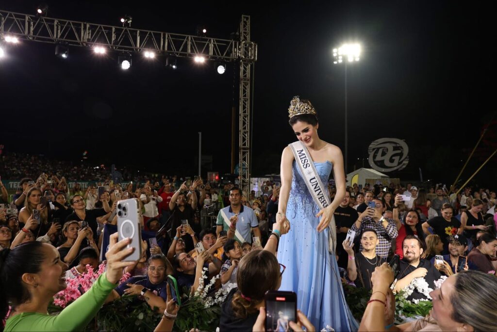 La Miss Universo 2025 Fátima Bosch Fernández saludó desde su carro alegórico a los miles de asistentes que se dieron cita sobre Avenida Méndez, para disfrutar el desfile.