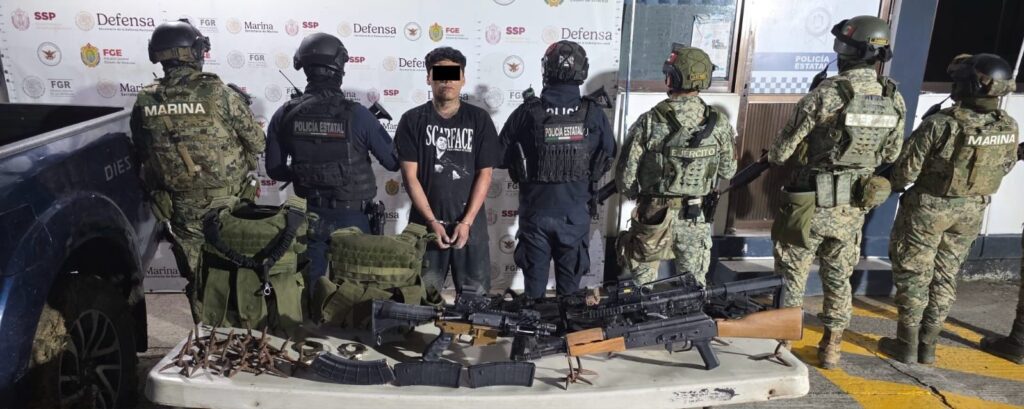 En Coatzacoalcos fue aprehendido un masculino por delitos contra las instituciones de Seguridad Pública y en Tuxpan se aseguró un arma de fuego larga, granadas de 40 mm, una granada de fragmentación y una camioneta sin reporte de robo.
