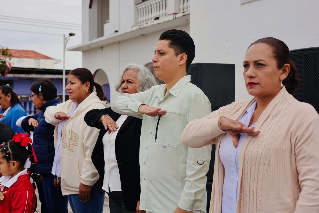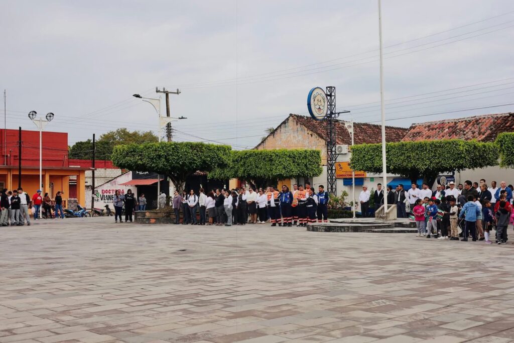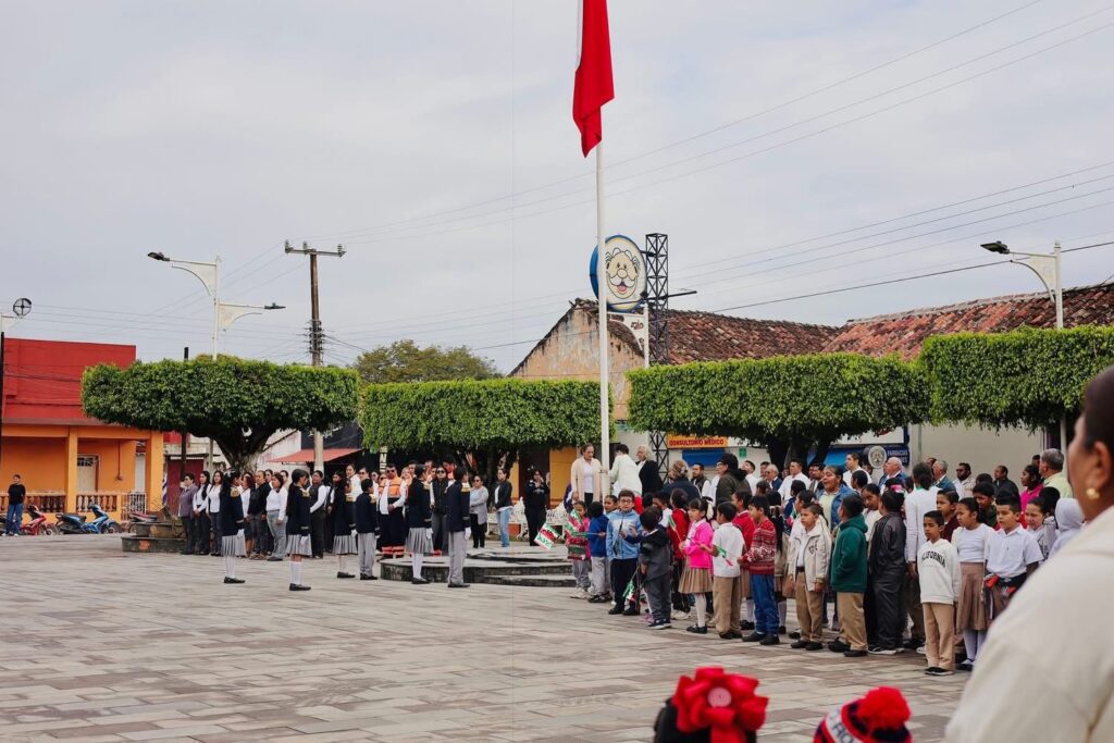 El lábaro patrio ondeó con orgullo en el Día de la Bandera en Chacaltianguis.