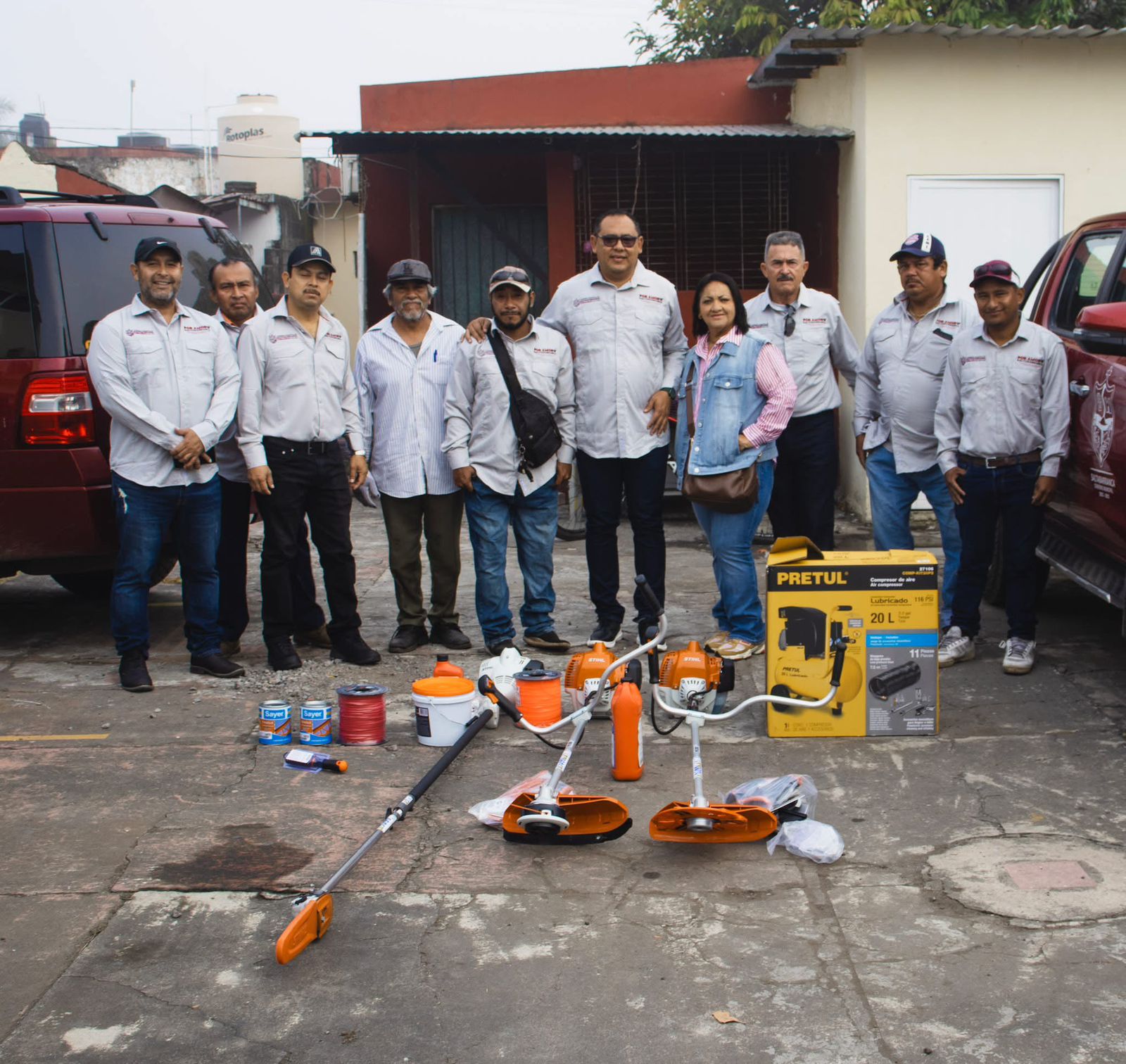 El H. Ayuntamiento de Saltabarranca que preside el Lic. Elvis Lauriani Román, encabezó la entrega de equipamiento a la dirección de Parques y Jardines en su primera etapa.