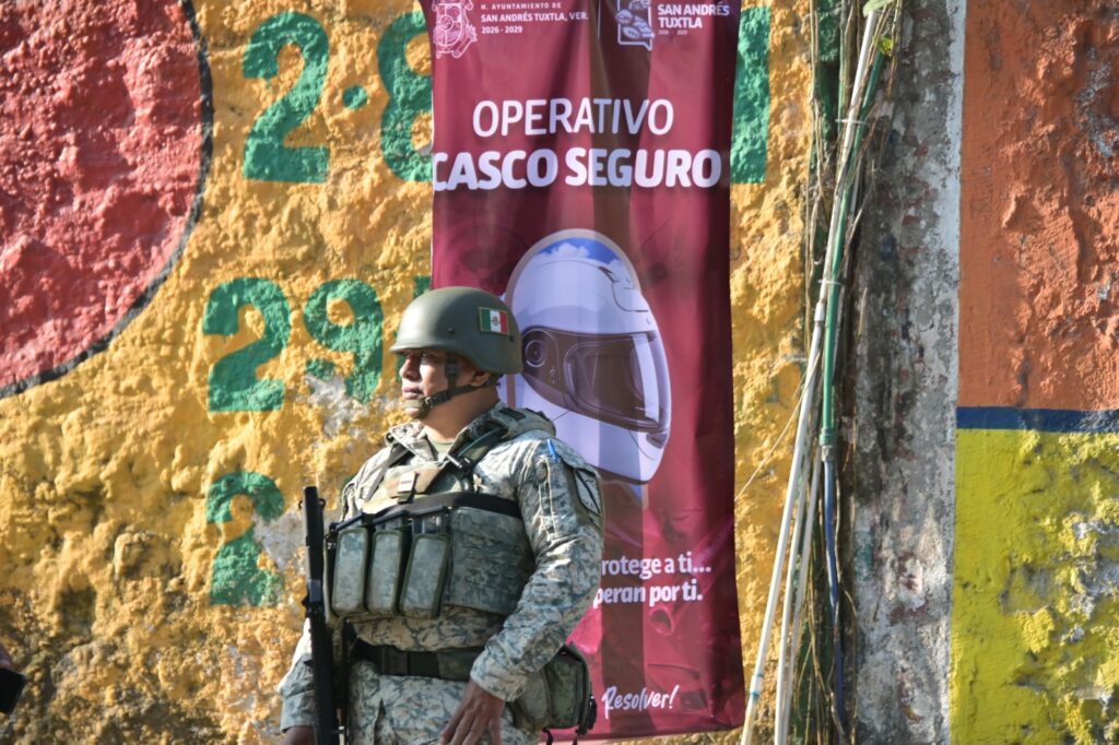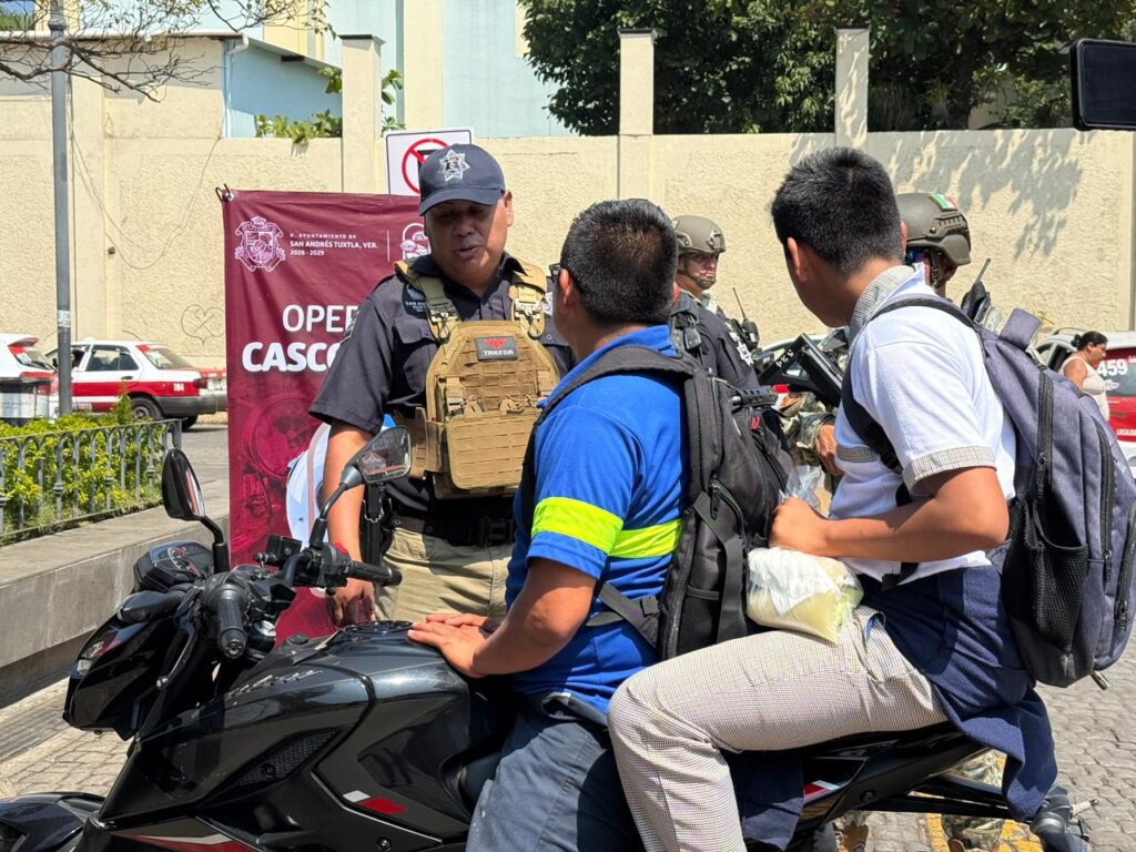 San Andrés Tuxtla, Ver., 18 de febrero de 2026.- Para promover el uso del casco de seguridad en la ciudad de San Andrés Tuxtla, el Gobierno Municipal realizó este miércoles a través de la dirección de Seguridad Social y en coordinación con la Delegación de Transito Estatal el operativo “Casco Seguro”.