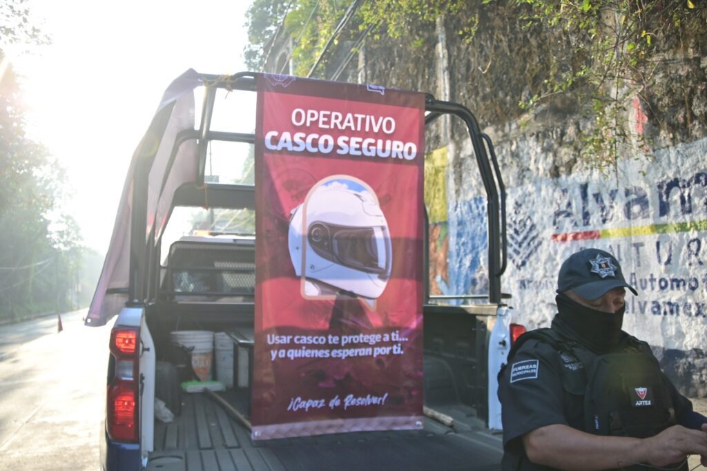 El operativo “Casco seguro” fue instalado en cuatro puntos estratégicos del municipio, este también incluyó la revisión de placas y licencias para un mayor control de las unidades que circulan a diario. En esta iniciativa surgida del Ayuntamiento participaron elementos de Tránsito Estatal, Guardia Nacional y la Secretaría de la Defensa Nacional.
