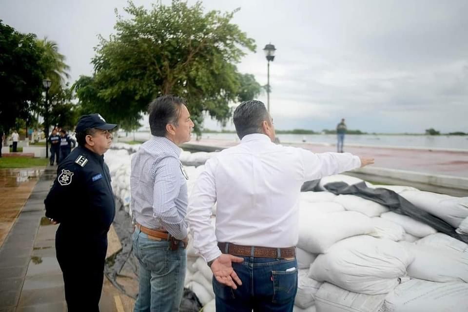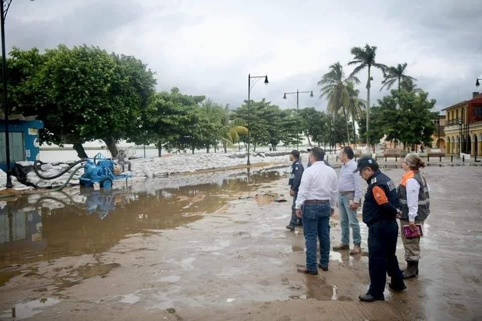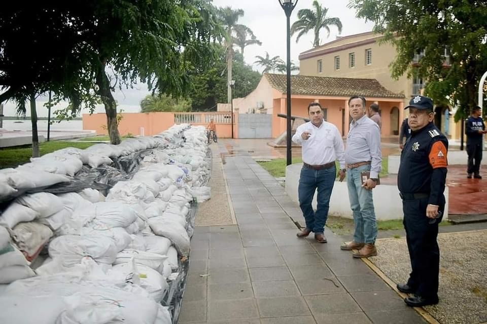 En Tlacotalpan, para mitigar los efectos de las inundaciones, se llenaron 635 costalillas de arena y se construyó un muro de 45 metros para contener filtraciones, con el apoyo de la SEDENA, CONAGUA y SPC.