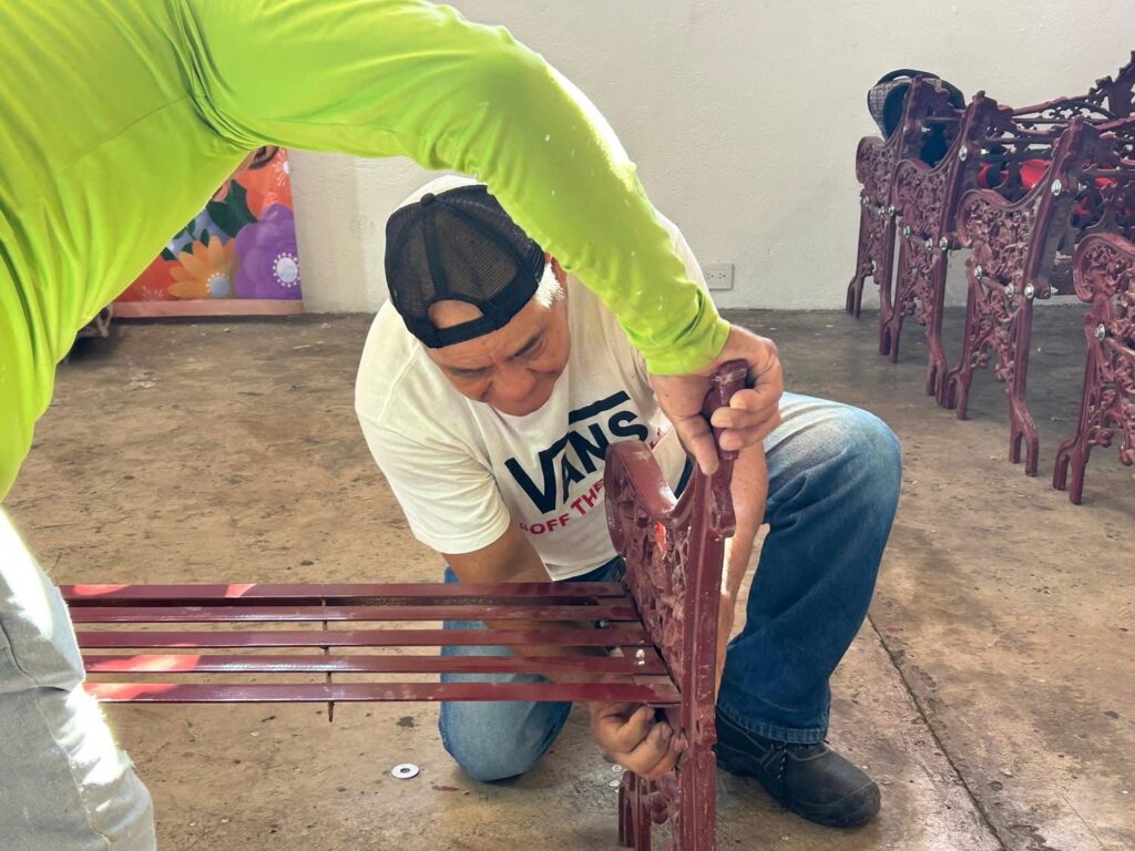 Lerdo de Tejada, Ver.- El gobierno municipal de Lerdo de Tejada, que preside Flor María de Jesús Sosa Zamudio anunció que están trabajando en el armado de 23 nuevas bancas que estarán al servicio de la ciudadanía, en el Parque Hidalgo.