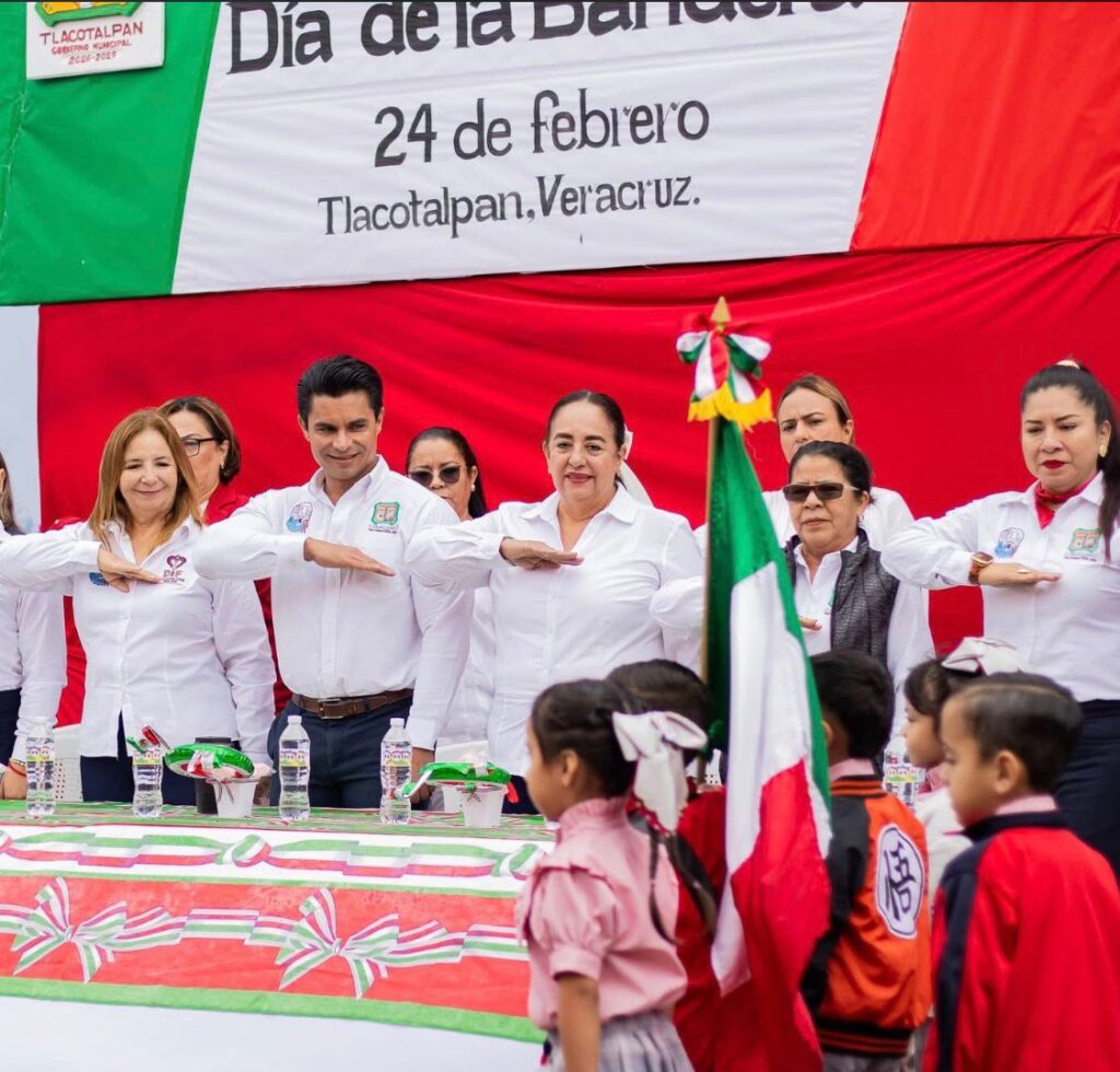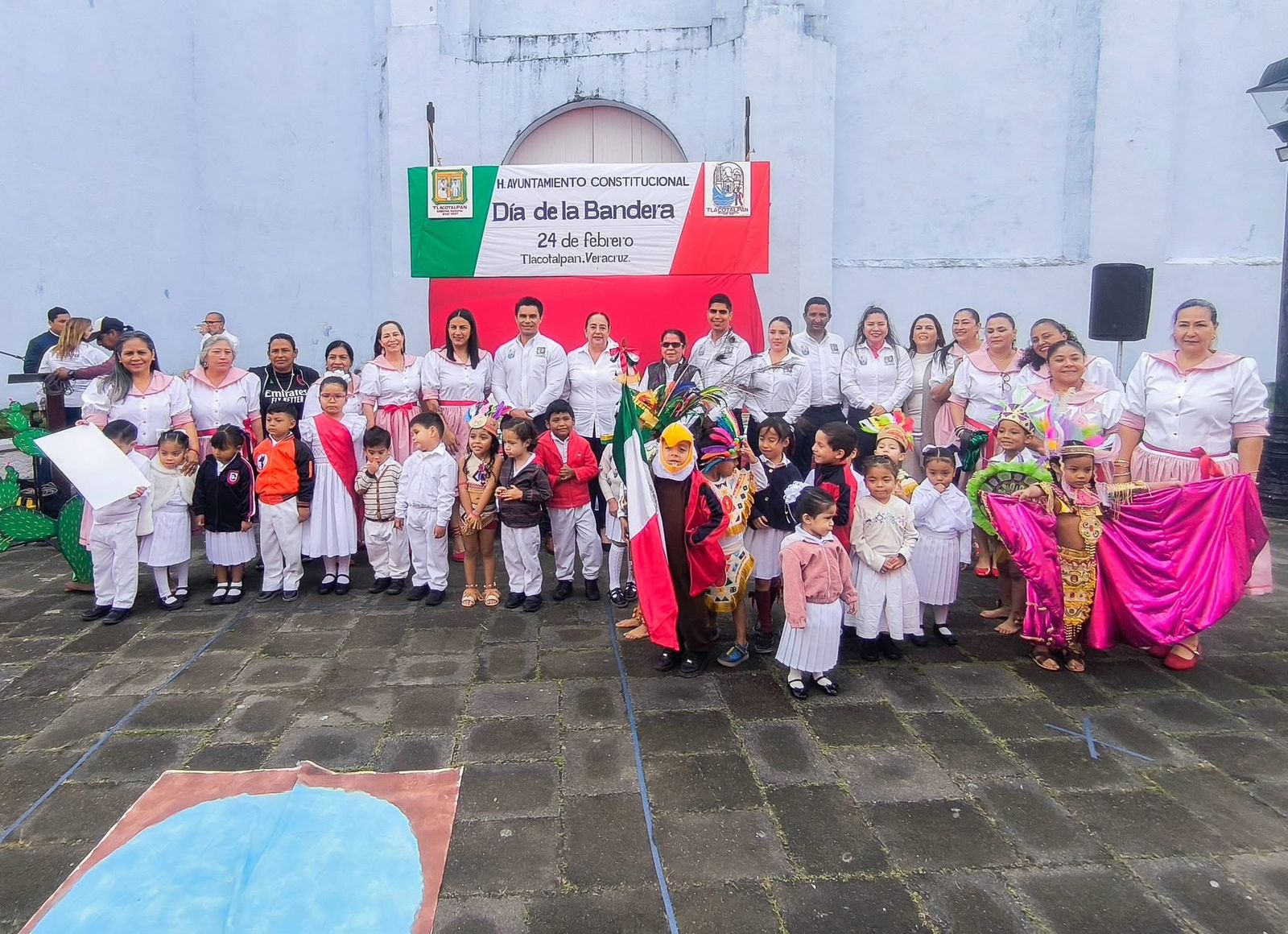 Tlacotalpan, Ver.- El Ayuntamiento de Tlacotalpan, que preside el Ing. Christian Romero Pérez, reconoce y felicita al Jardín de Niños Josefa Murillo por la organización de los Honores a la Bandera con motivo del Día de la Bandera, acto cívico que reunió a los distintos jardines de niños de Tlacotalpan en una emotiva ceremonia llena de respeto y orgullo patrio.