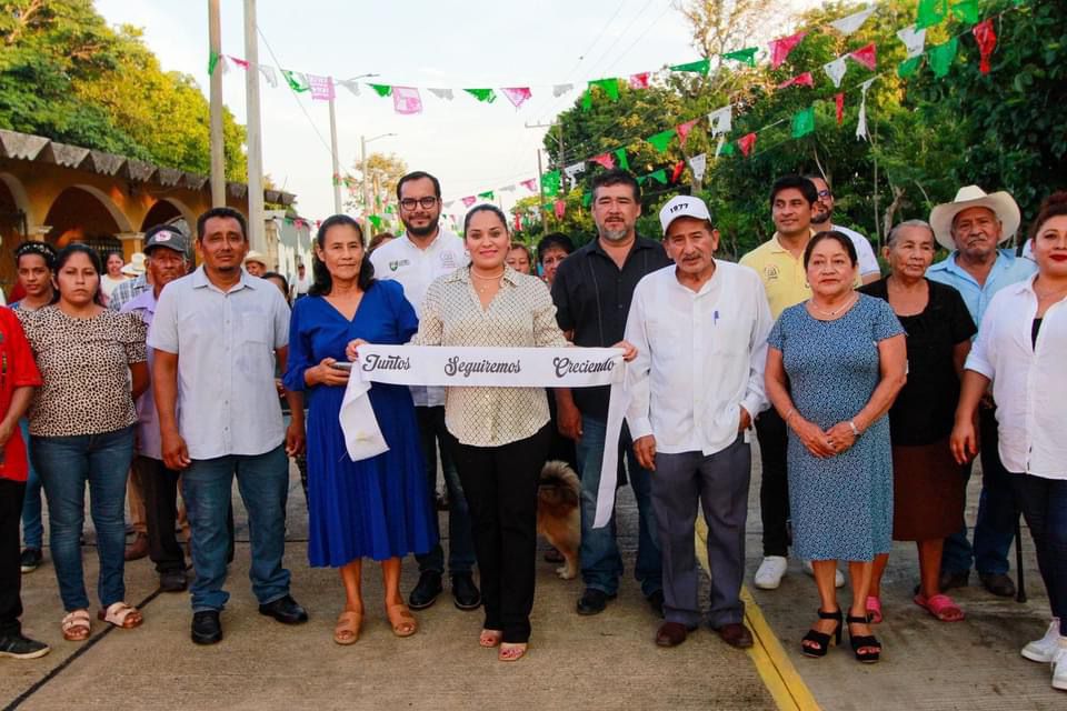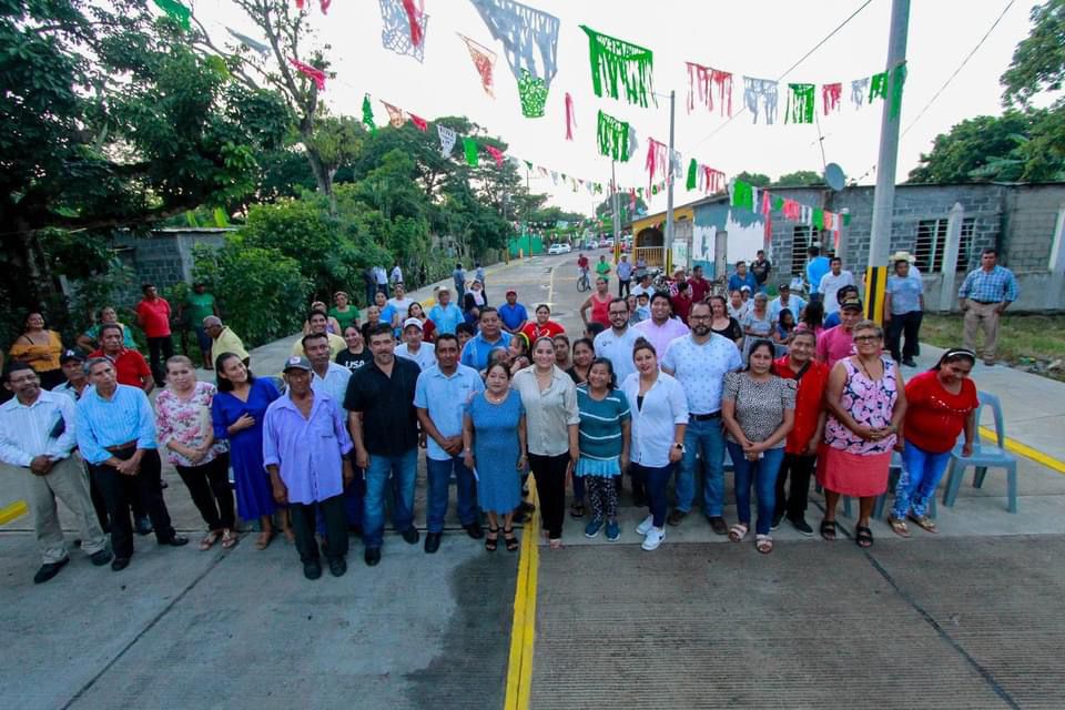 Esta tarde la mandataria entregó la pavimentación en concreto hidráulico de la Calle Moctezuma en la localidad de Tres Zapotes.