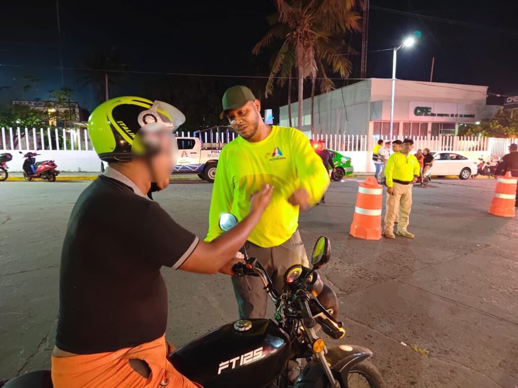 Alvarado, Ver.- El H. Ayuntamiento de Alvarado, que encabeza el Mtro. Alberto Ángel Cobos Márquez, en coordinación con Tránsito del Estado, Policia Municipal y Protección Civil, llevó a cabo un operativo enfocado en prevenir accidentes, generar conciencia y fortalecer la cultura del uso del casco entre motociclistas.