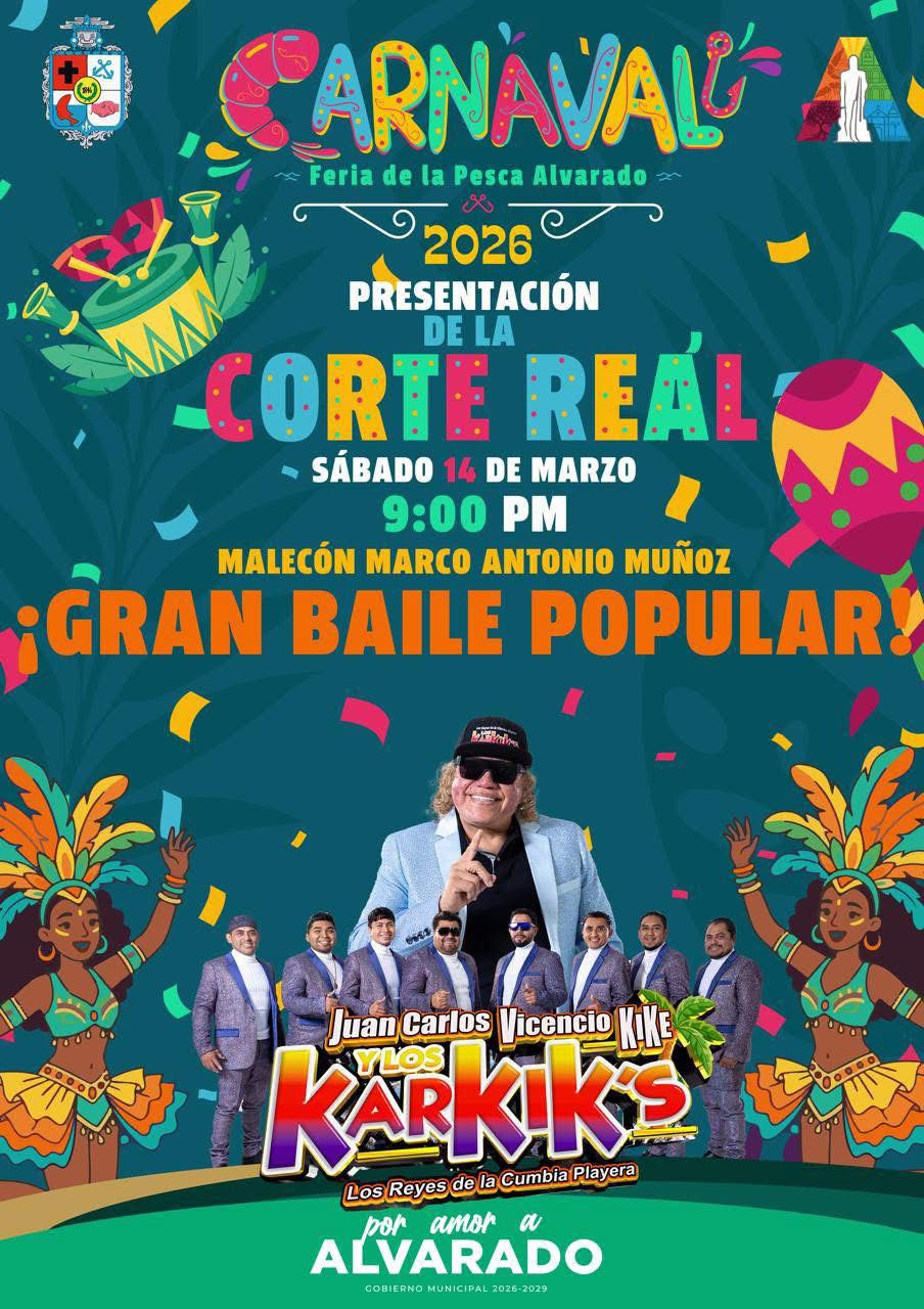 El H. Ayuntamiento de Alvarado y la Junta de Mejoras te invitan a la Gran Presentación de las Cortes Reales del Carnaval de la Feria de la Pesca Alvarado 2026, en su Edición 77.