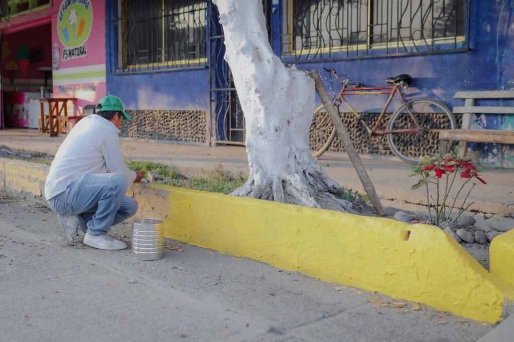 Durante estas acciones se llevó a cabo la limpieza de guarniciones y banquetas, el pintado de guarniciones, así como la poda y encalado de árboles.