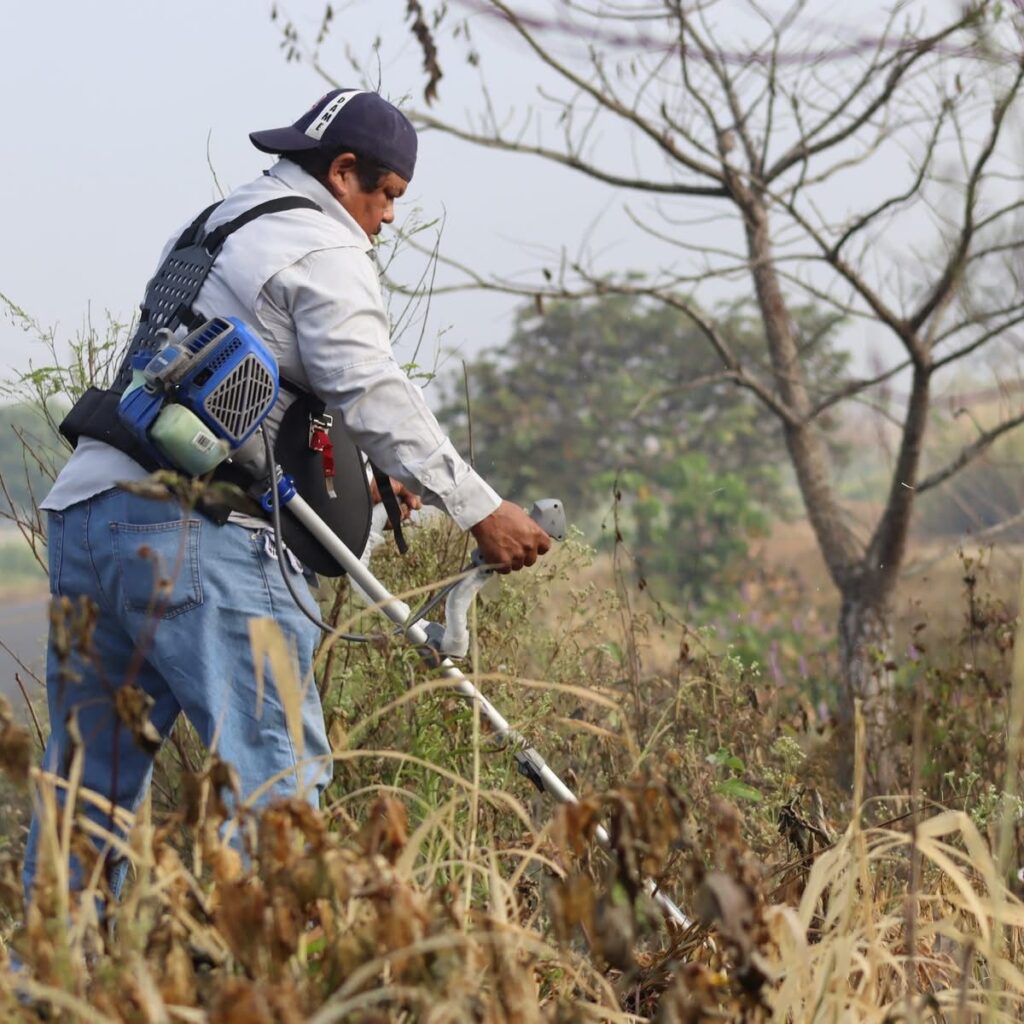 Saltabarranca, Ver.- Por instrucciones del alcalde de Saltabarranca, Laureani Roman, la Dirección de Parques y Jardines inició desde las primeras horas de este martes las labores de limpieza y desmonte en la carretera Saltabarranca-San Pedro.