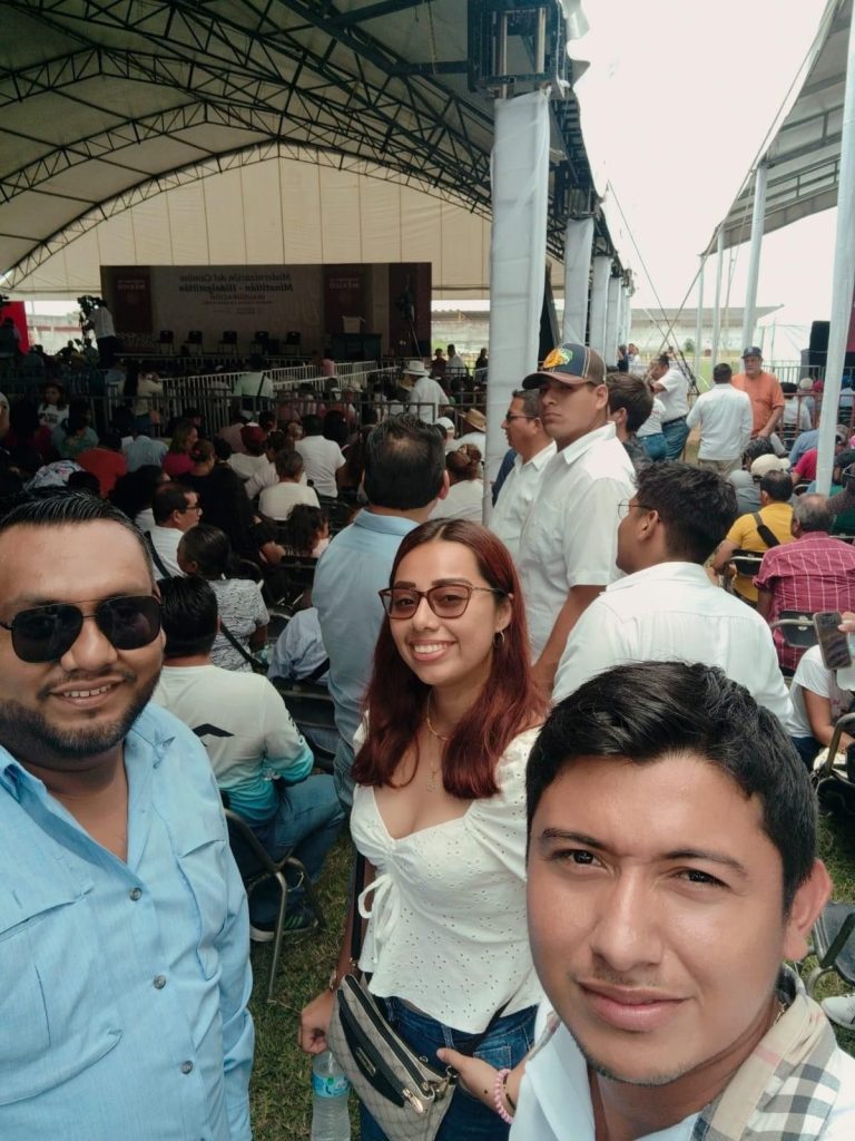 El Director del Instituto Tecnologico Superior de Cosamaloapan asistido al evento de inauguración donde el Presidente, Andrés Manuel López Obrador y la Presidenta Electa, Claudia Sheimbaum de la Carretera Minatitlán/Hidalgotitlán llevado a cabo en la Unidad Deportiva Benito Juárez.