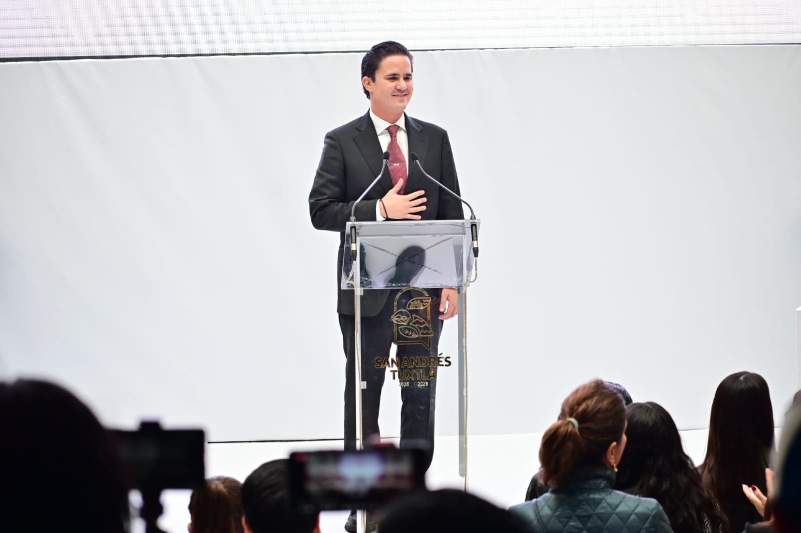 Acompañado del Subsecretario del Gobierno del Estado de Veracruz, José Manuel Pozos Castro, quien acudió en representación de la Gobernadora Rocío Nahle, exalcaldes de San Andrés Tuxtla, sus padres, hermana, amigos e invitados especiales, Rafa Fararoni tomó protesta de ley como alcalde de San Andrés Tuxtla a lado del cuerpo edilicio que lo acompañará durante el período 2026- 2029.