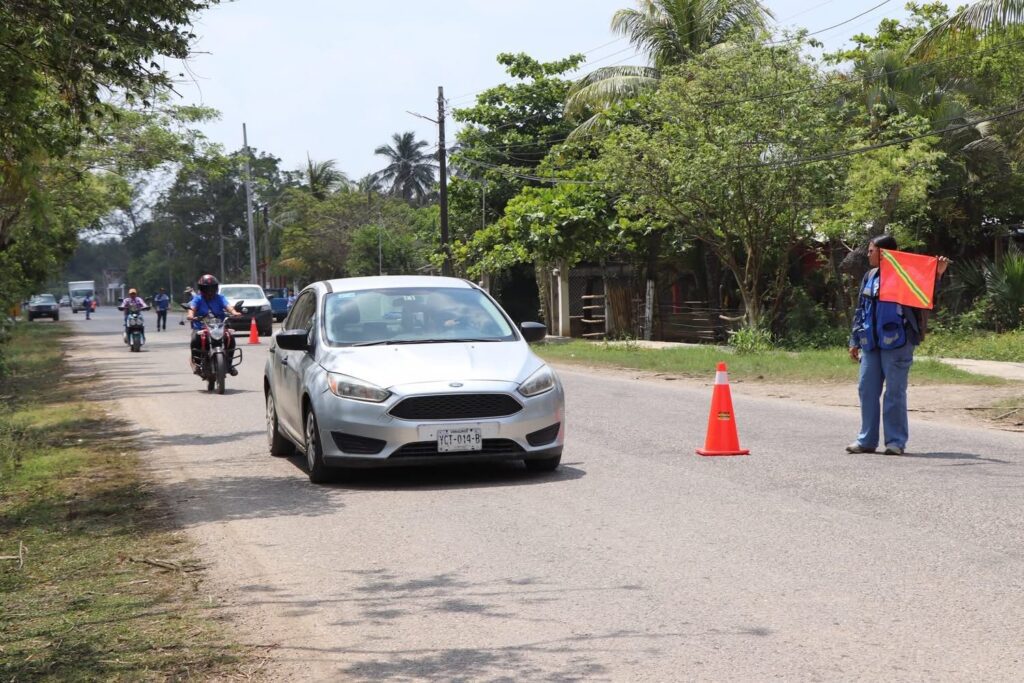 Ixmatlahuacan, Ver.- El H. Ayuntamiento de Ixmatlahuacan que preside la C.P. Celia Fabián García en coordinación con la dirección de Protección Civil, realizan el trabajo de prevención vial en el tramo carretero de Chicalpextle.