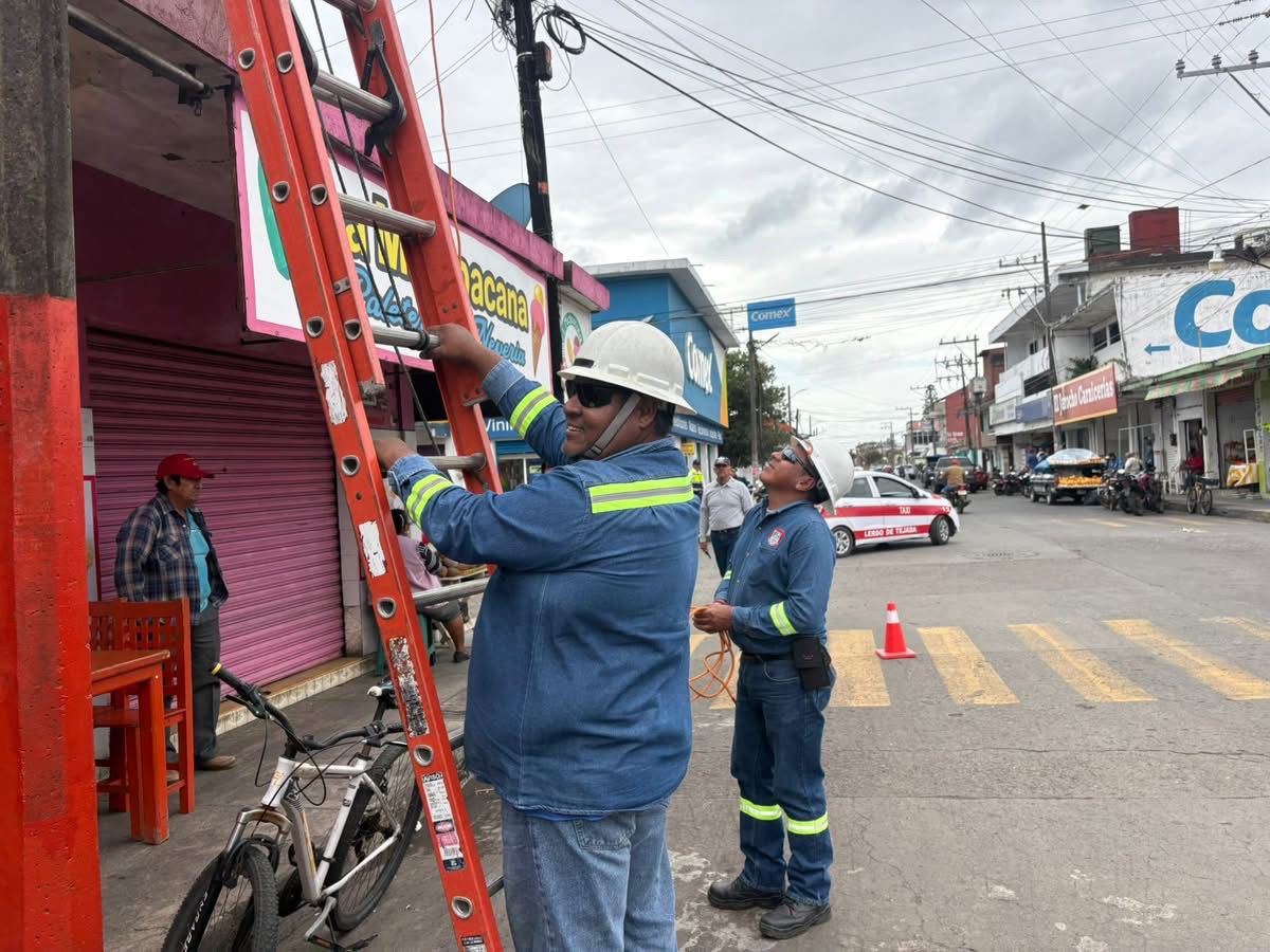 Lerdo de Tejada, Ver.- La alcaldesa de Lerdo de Tejada, Flor María de Jesús Sosa Zamudio continúa realizando trabajos de rehabilitación de luminarias en la calle Revolución.