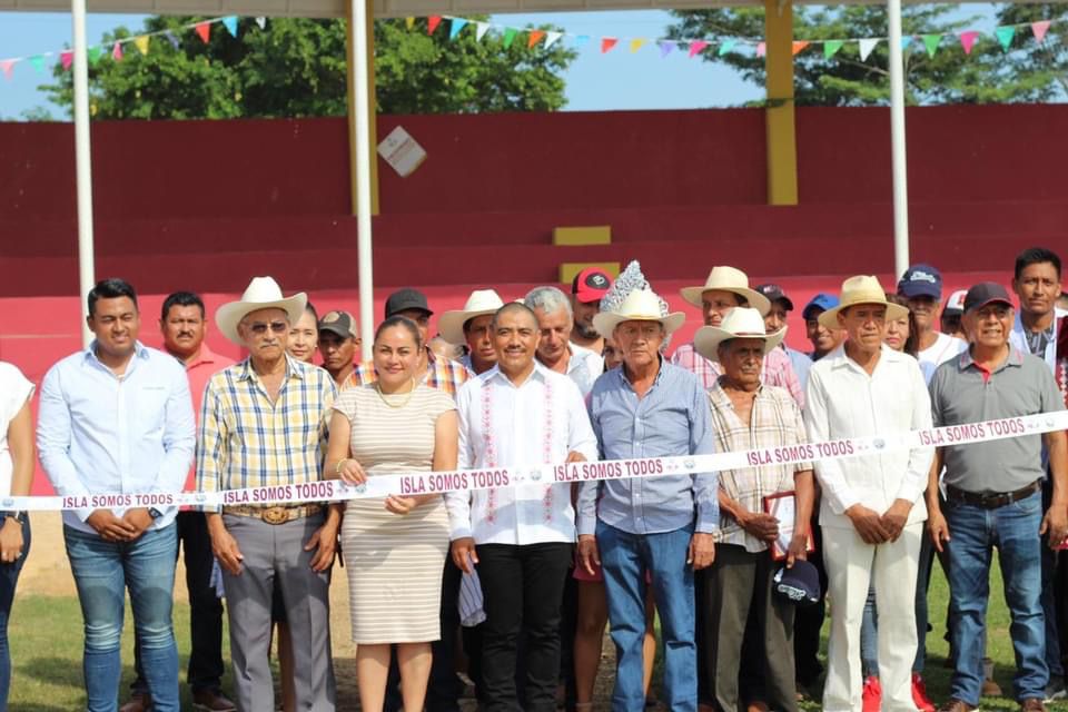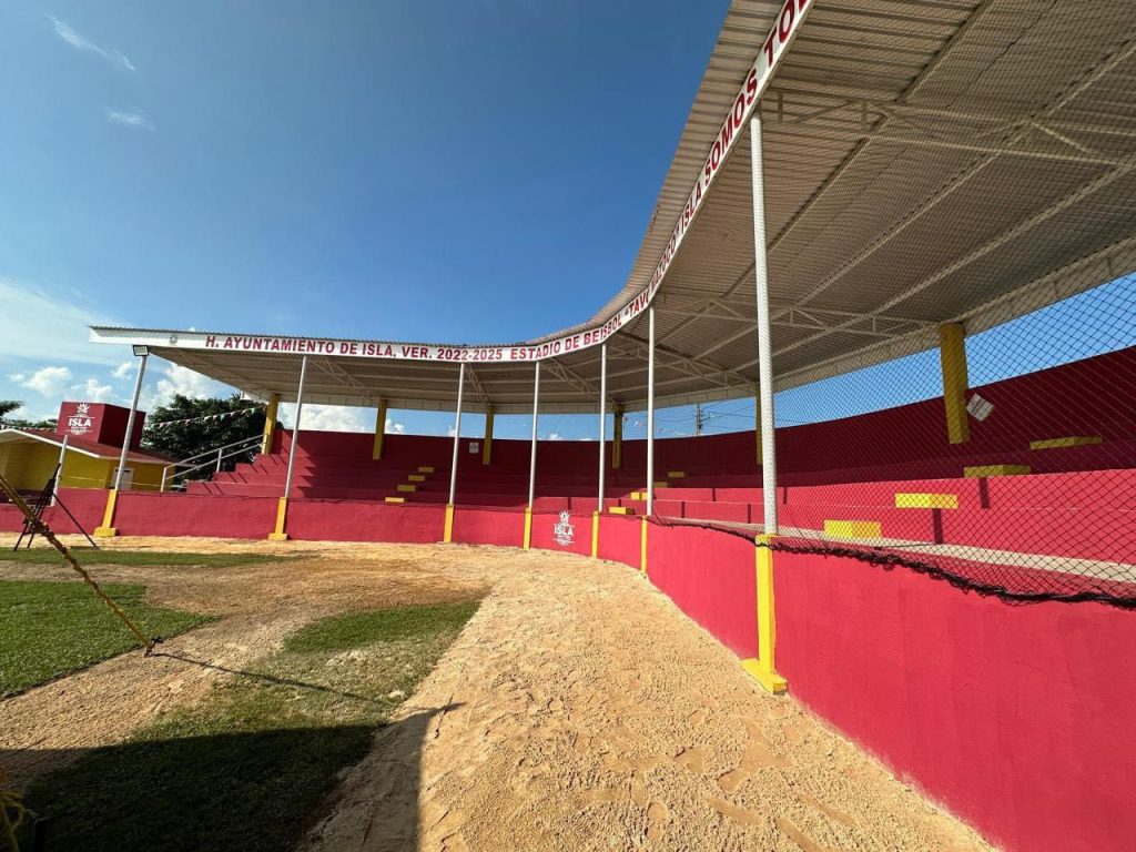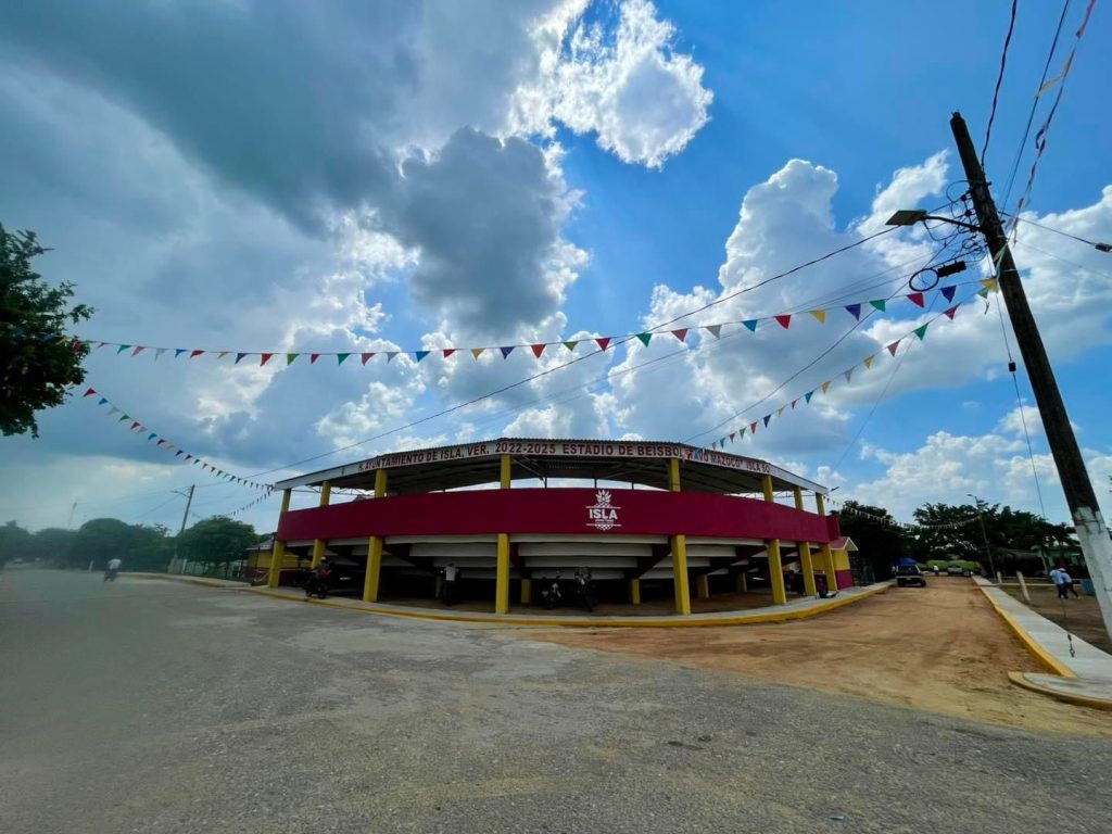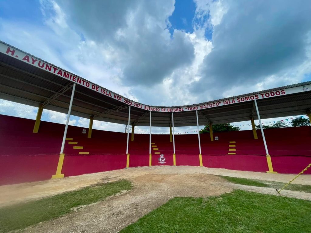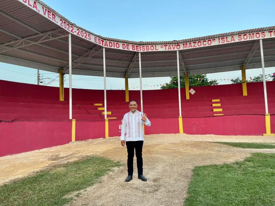 Isla, Ver.- El presidente municipal de Isla, Gustavo Alfonso Torres con gran emoción inauguró el estadio de beisbol en Mazoco.