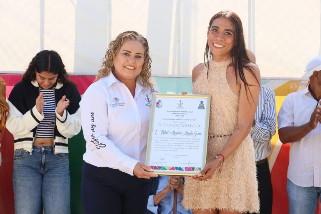 De igual forma, se otorgó un reconocimiento a la joven alvaradeña Valentina Murrieta Ortiz, integrante de la Selección Mexicana Sub-17 Femenil, ganadora del Guante de Oro en el Mundial 2025, por poner en alto el nombre de Alvarado a nivel mundial.