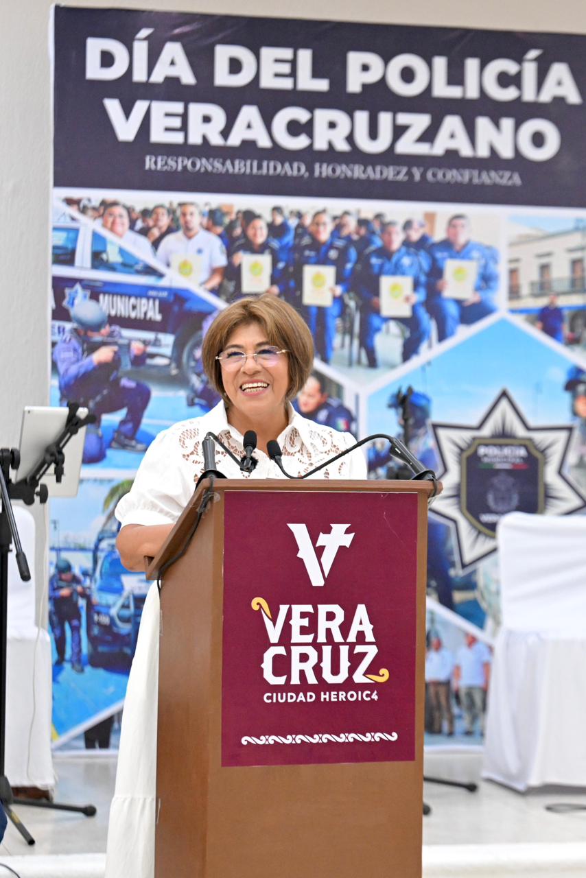 Al reconocer a todas y todos los policías municipales de Veracruz por arriesgar su vida en aras de la paz de la ciudadanía, expresó que “con su valiente actuar, la gobernabilidad no se queda en el discurso, se refleja en cada calle y colonia popular, se refleja en la tranquilidad de mujeres, niñas y adultos mayores, y en el bienestar colectivo”.