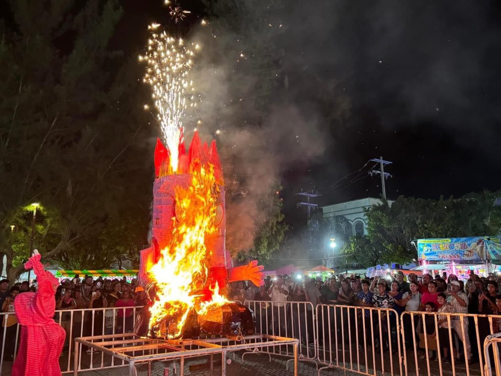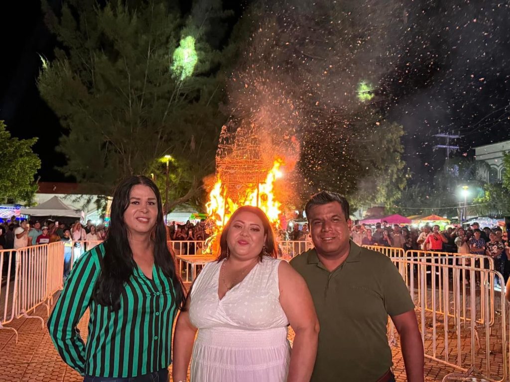 La Presidenta en funciones María Esther Arróniz López, la Sindica en funciones Karem Sahara Ruiz Machucho y el presidente del DIF Municipal, Jorge Luis Medina Alegría, fueron los encargados de prender el fuego al mal humor.