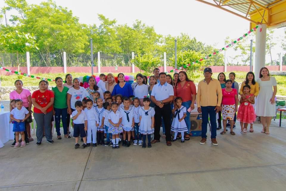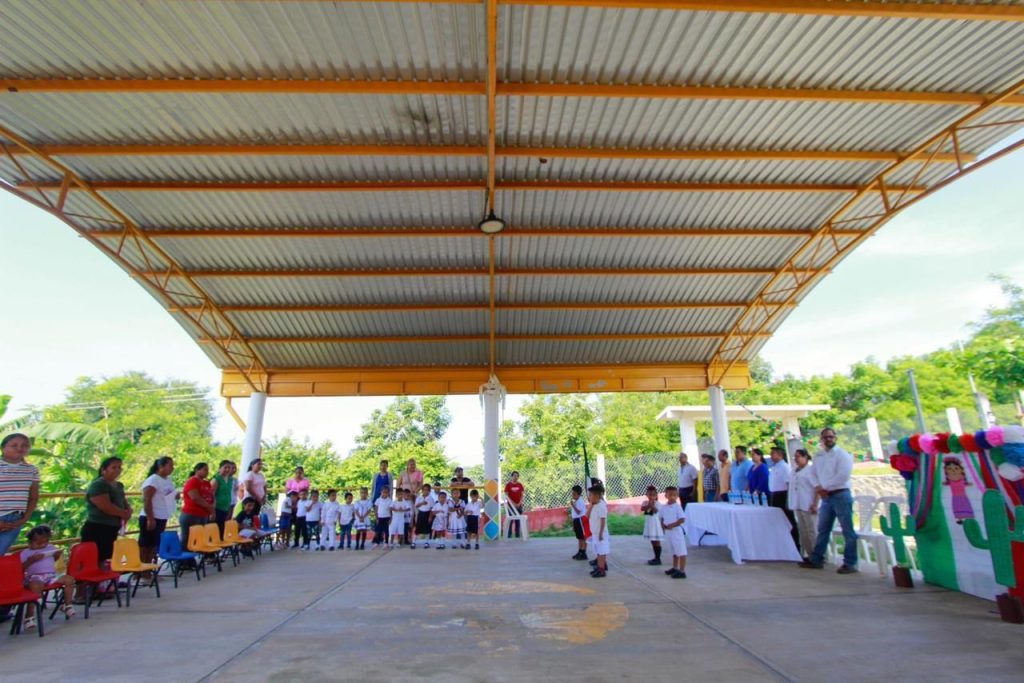 La presidenta municipal de Santiago Tuxtla, Kristel Hernández Topete visitó el Jardín de Niños “Juanita Errasquin de Jurado” de la localidad de Texcochapan de Abajo, donde presidió los honores al Lábaro Patrio.