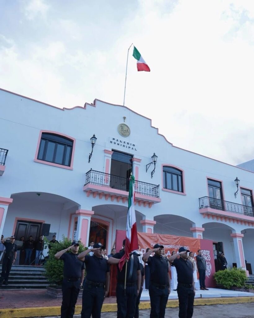 El presidente municipal de Catemaco, Manuel Eduardo Toscano hoy encabezo el acto conmemorativo por el día de la Bandera,
