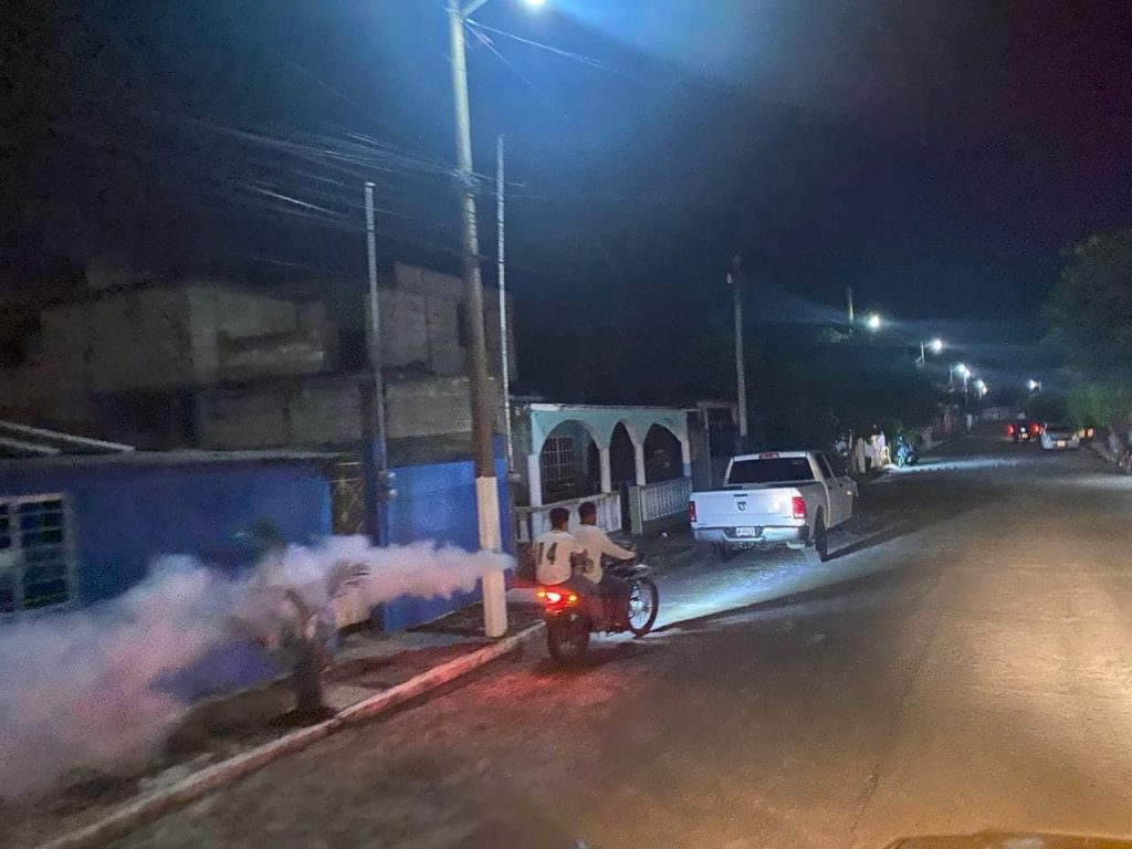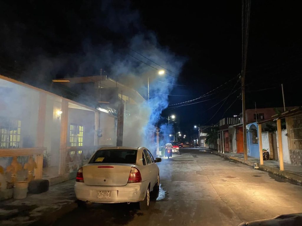 Lerdo de Tejada, Ver.- La presidenta municipal de Lerdo de Tejada, María Esther Arroniz López continúa con los trabajos de fumigación, en la colonia 3 de enero, calle Cirilo Palacios, calle Paulino Ortiz, y la colonia jardines contra el mosquito transmisor del dengue.
