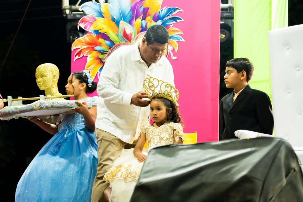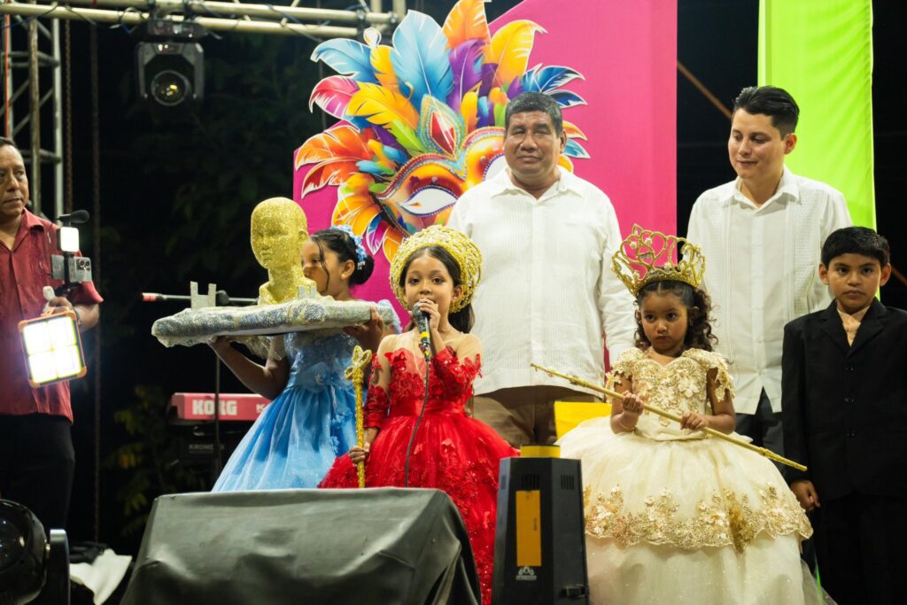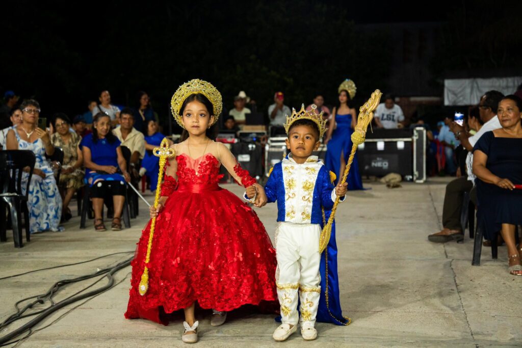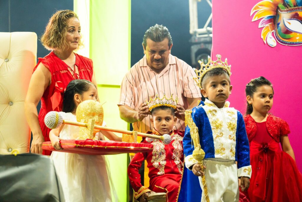Entre aplausos, sonrisas y un cálido ambiente familiar, Jeremy Rosado Pitalúa y Romina Kailani Cobos Santos fueron coronados como Reyes Infantiles, mientras que Rafael Sena García y Yacsini Cobos Torrecilla recibieron con orgullo sus coronas como soberanos de esta gran festividad.