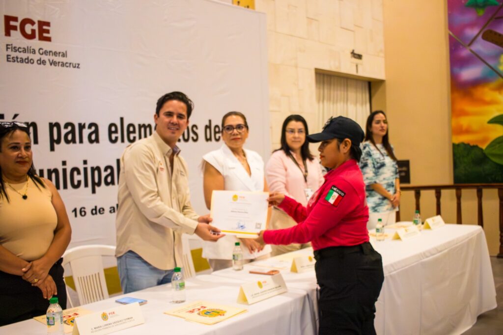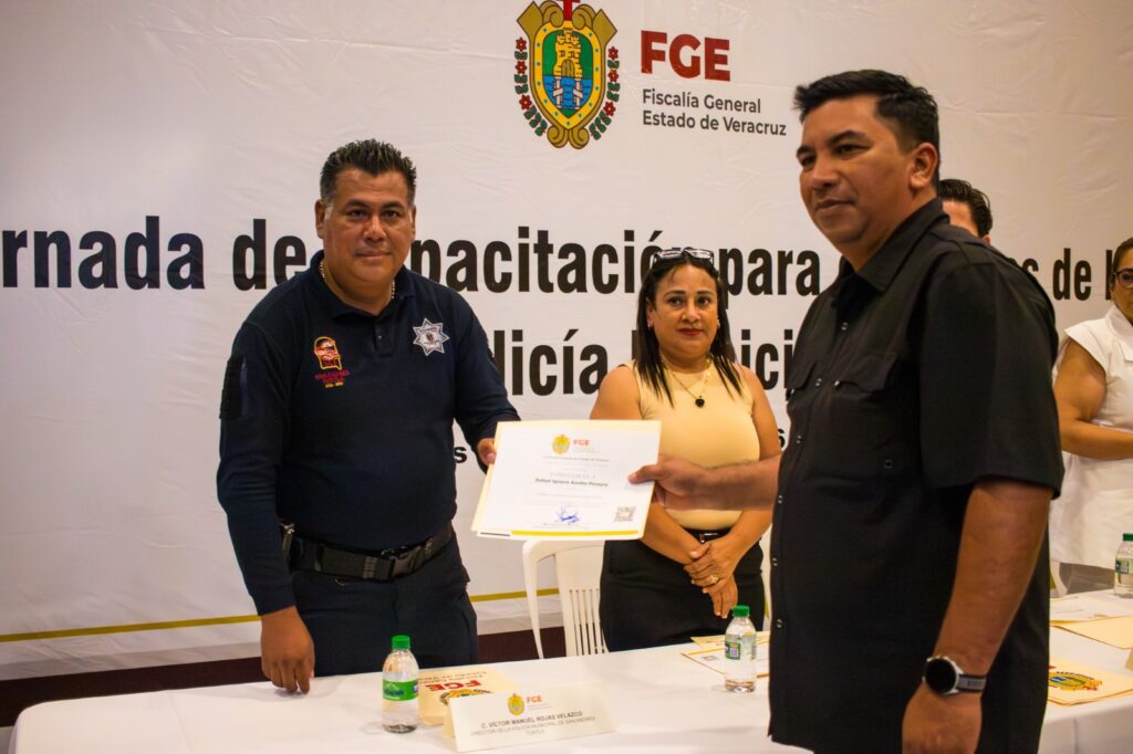 La FGE Veracruz entregó este día constancias de la capacitación concluida a policías de San Andrés Tuxtla, Hueyapan de Ocampo, Lerdo de Tejada, Ángel R. Cabada, Santiago Tuxtla y Catemaco.