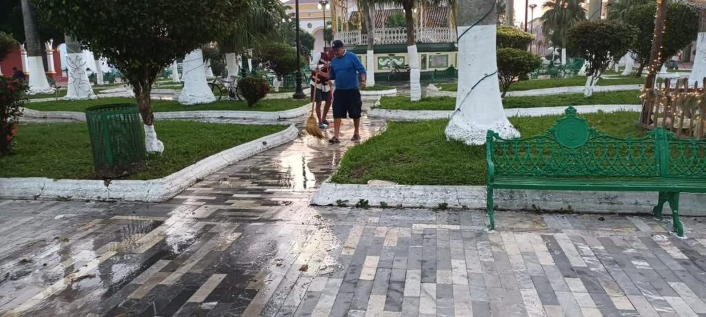 Tlacotalpan.- Este fin de semana, por instrucciones del alcalde Ing. Christian Romero Pérez, la Dirección de Parques y Jardines realizó trabajos de limpieza intensiva en el Parque Zaragoza.