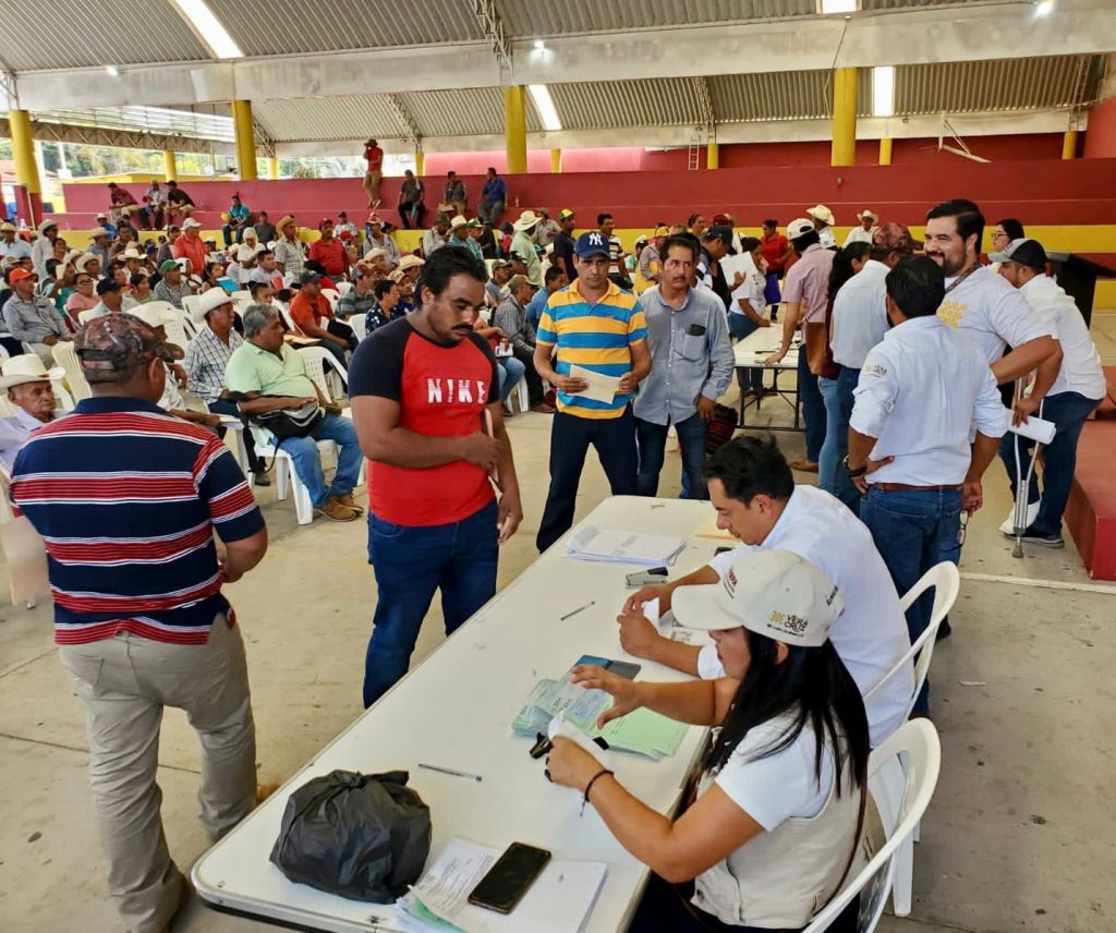 El evento continuó con la entrega simbólica del pago del seguro catastrófico a cuatro productores de maíz, para posteriormente iniciar con el pago de todos los beneficiarios.
