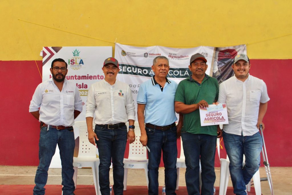 Isla, Ver.- El presidente municipal Gustavo Alfonso Torres hizo entrega del pago de seguro catastrófico, como parte de una gestión exitosa realizada ante la Secretaría de Desarrollo Agropecuario, Rural y Pesca (SEDARPA), con el que benefició a casi 500 productores de bajos ingresos de 35 comunidades.