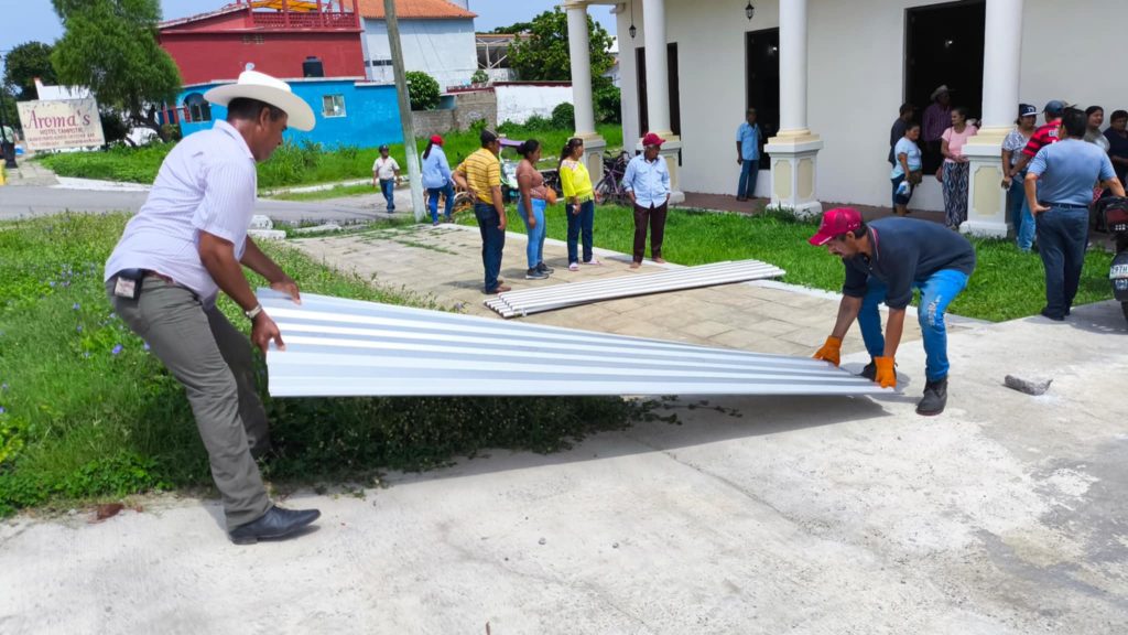 Tlacotalpan.- Buscando mejorar las condiciones de vida de los habitantes de Tlacotalpan, el alcalde Ing. Luis Medina Aguirre, entregó 2,000 láminas a decenas de familias que ahora podrán mejorar sus techos para protección de sus seres queridos.
