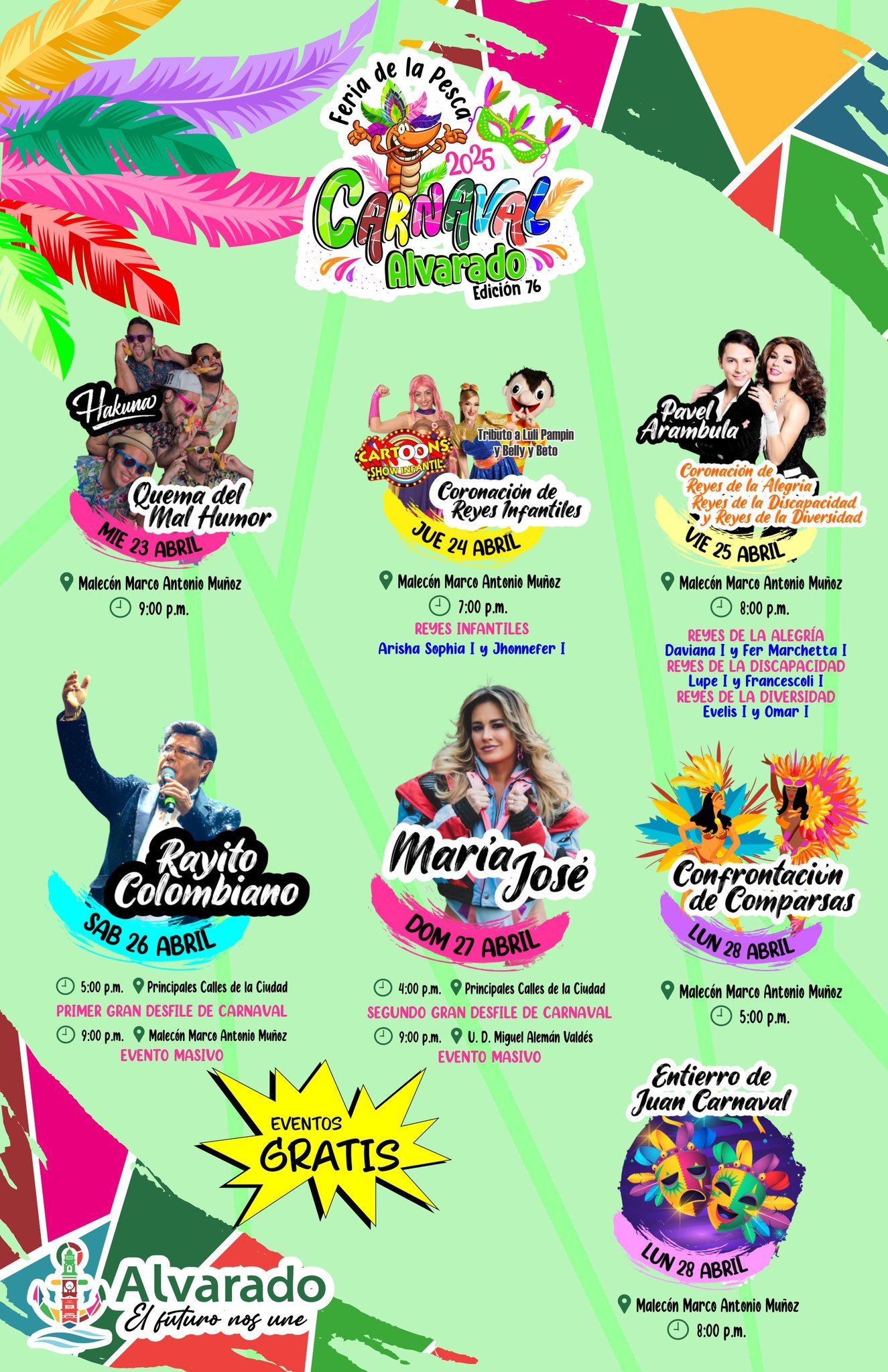 Viernes 25: Coronación de Reyes de la Alegría, Discapacidad y Diversidad con Pavel Arámbula – 8:00 p.m. – Malecón Marco Antonio Muñoz