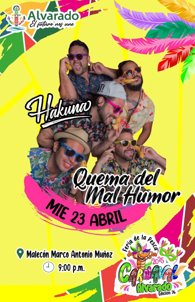 Miércoles 23: Quema del Mal Humor con Hakuna – 9:00 p.m. – Malecón Marco Antonio Muñoz