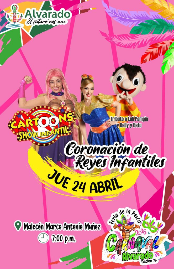 Jueves 24: Coronación de los Reyes Infantiles con show de Cartoon Show – 7:00 p.m. – Malecón Marco Antonio Muñoz